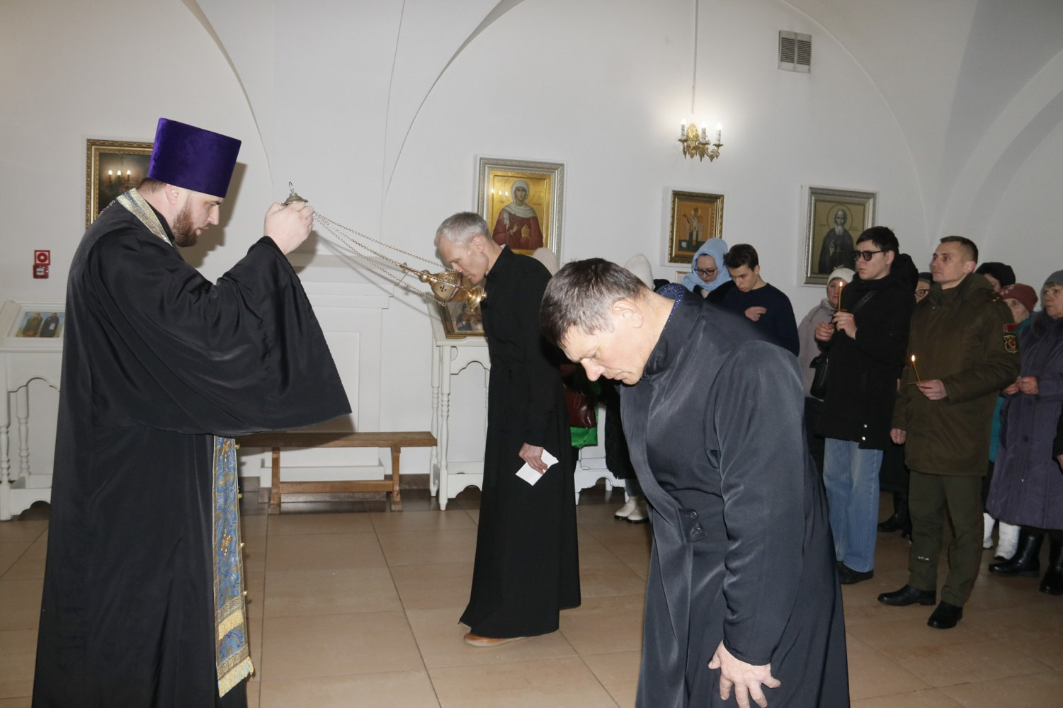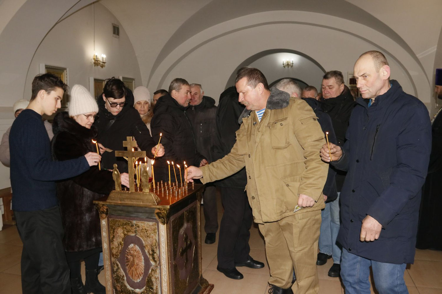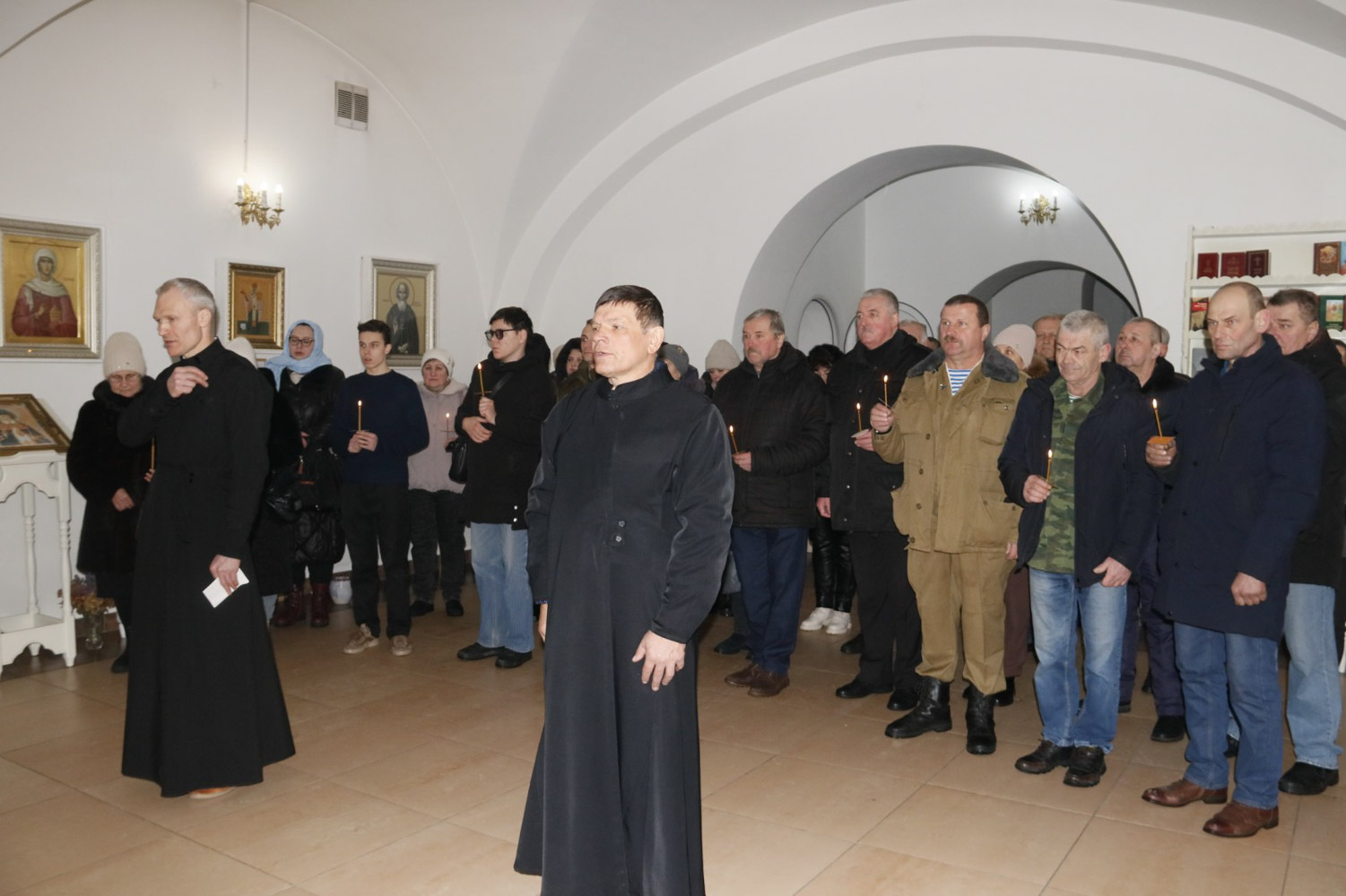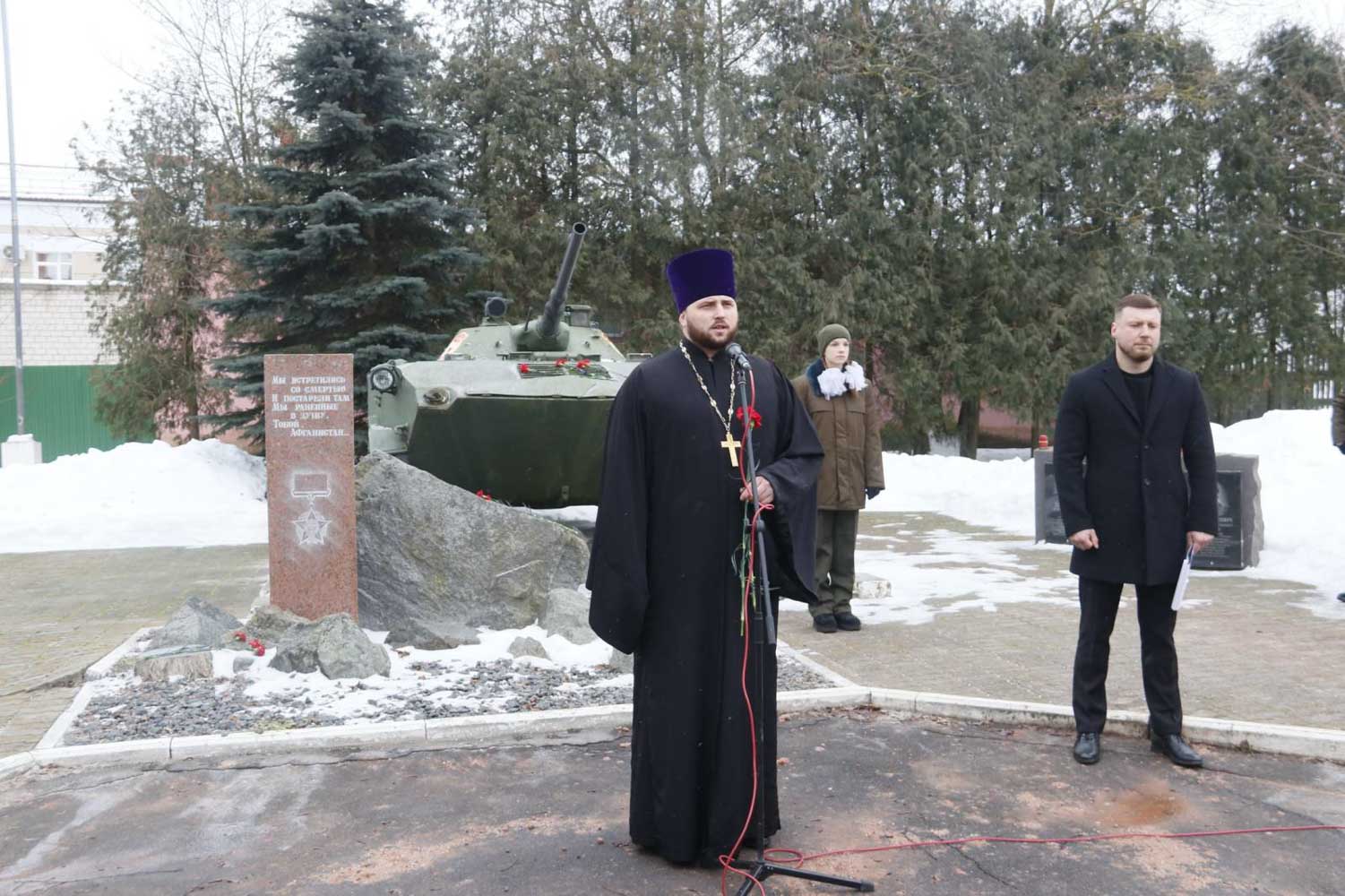 После возложения венков и цветов к памятному знаку и мемориальным плитам, увековечившим имена пяти не вернувшихся с Афганской войны рогачевских ребят, в храме святого благоверного князя Александра Невского была отслужена панихида.