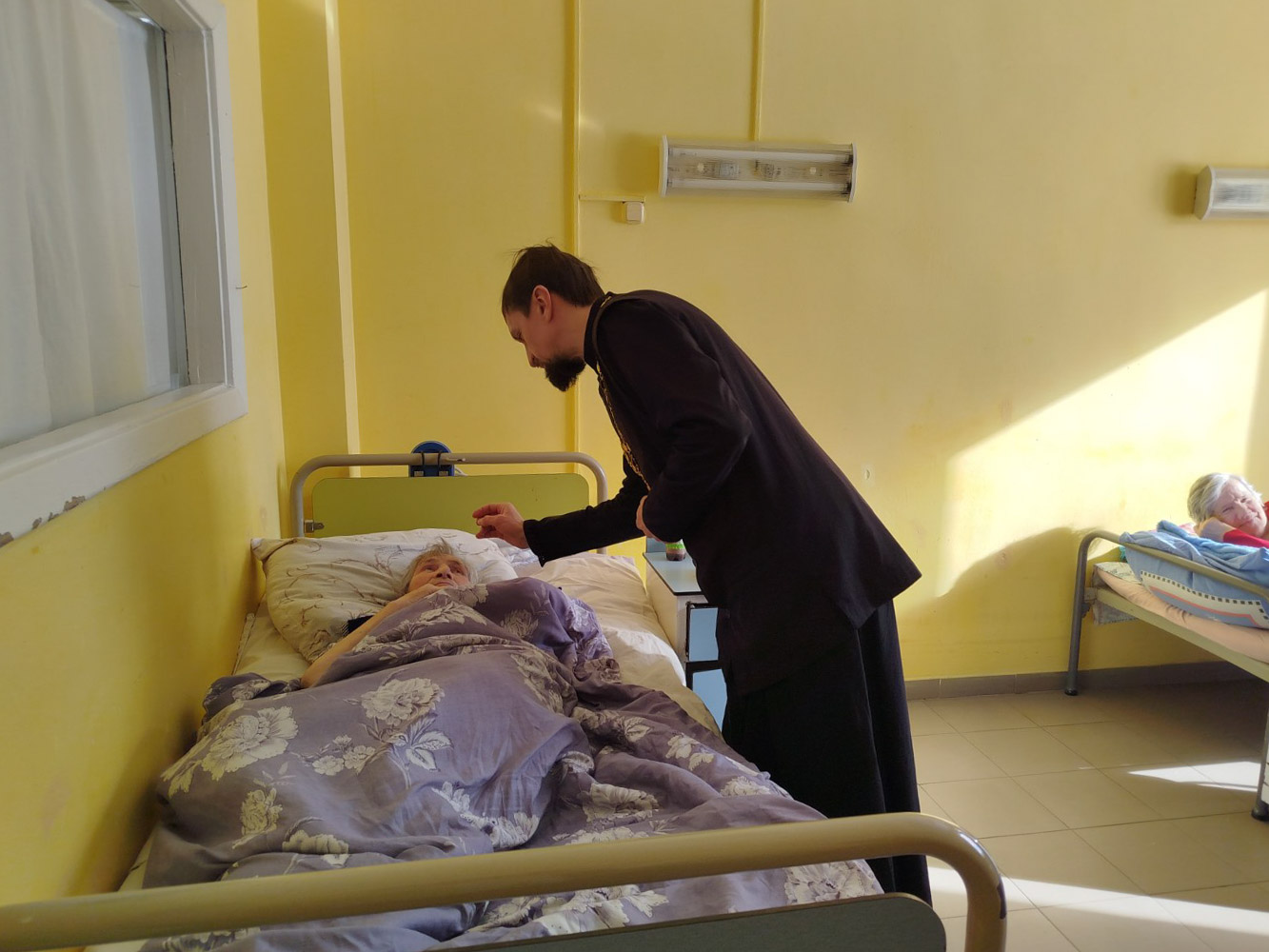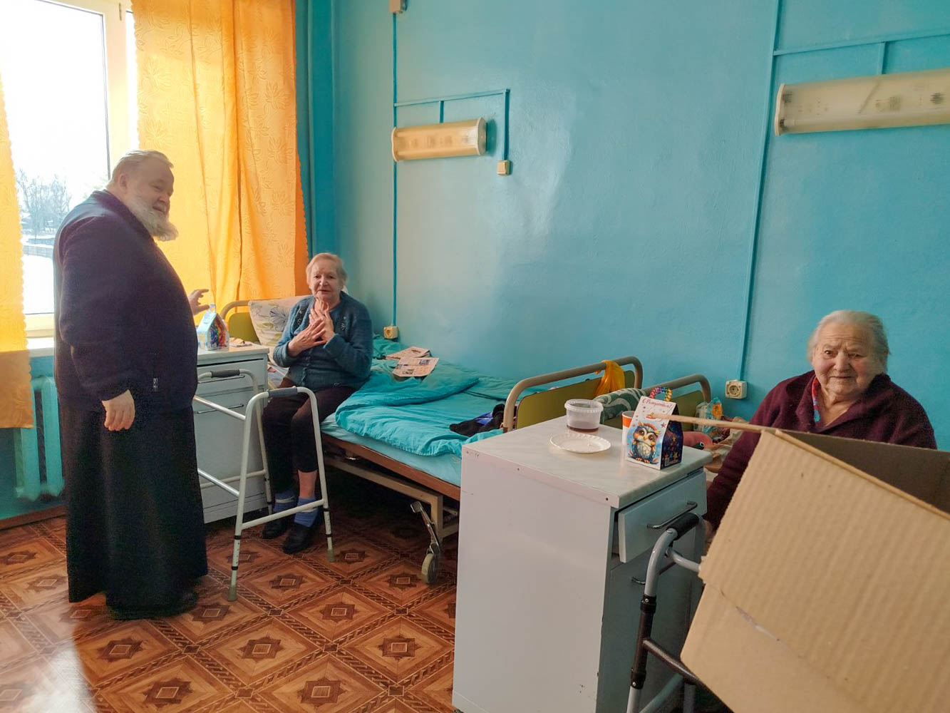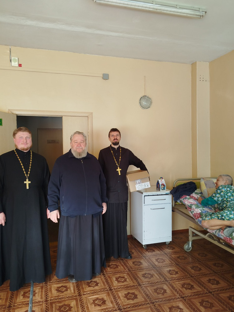 Во время визита для пациентов были переданы необходимые вещи — одежда и средства гигиены. Гости также прошли по палатам сестринского ухода, вручили каждому сладкие подарки и уделили время личному общению. Тёплые слова поддержки и пожелания здравия, бодрости духа и благополучия стали важной частью встречи, напоминая, что милосердие в церковной традиции начинается с уважения к человеку и готовности быть рядом.