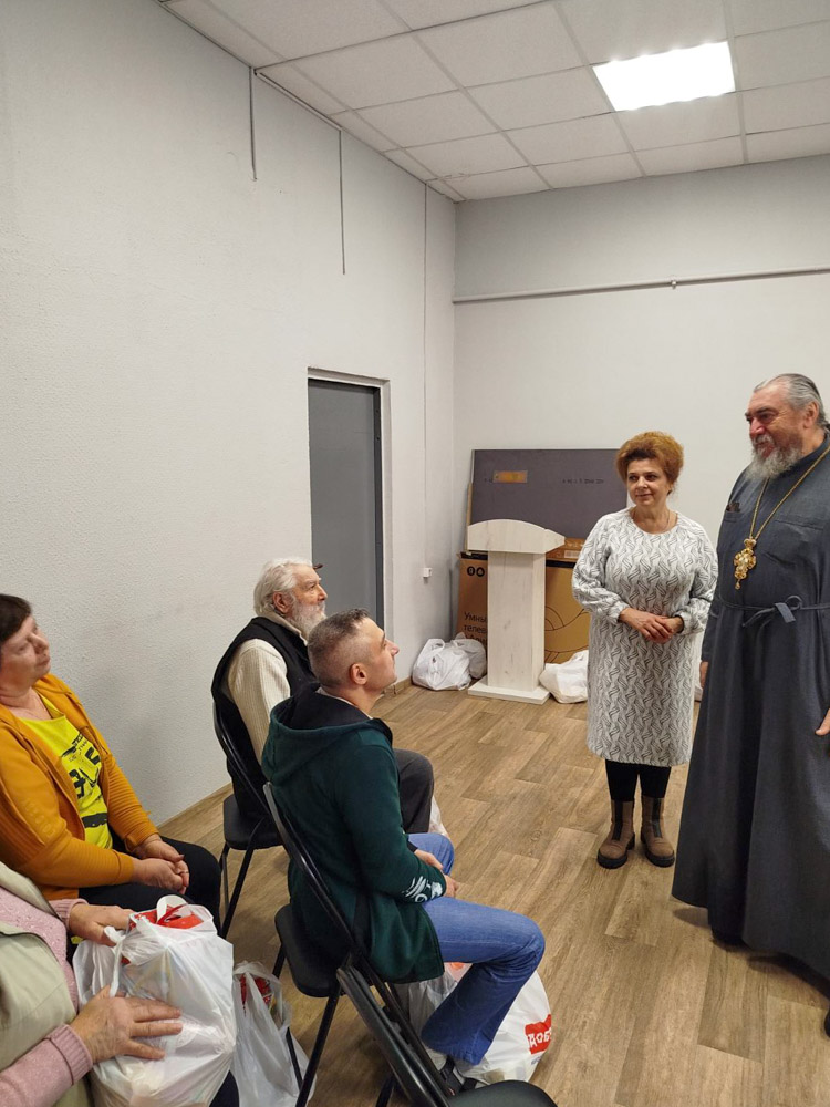 В ходе визита председатель социального отдела протоиерей Владимир Силенко побеседовал с проживающими, поддержал их пастырским словом и пожелал помощи Божией в преодолении жизненных испытаний, крепости духа, терпения, а также скорейшего обретения крова и устойчивости в жизни. Наряду с духовной поддержкой всем проживающим были переданы продуктовые наборы и сладкие подарки от Гомельской епархии.