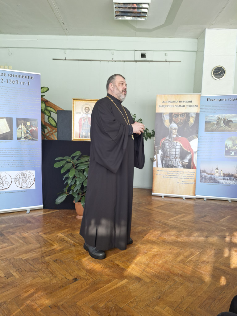 Обращаясь к присутствующим учащимся старших классов СШ №43 и гимназии №71, а также к постоянным читателям библиотеки, священнослужитель подчеркнул непреходящую актуальность образа святого князя для современной молодежи. Пастырь отметил, что истинное служение Отечеству немыслимо без твердого духовного основания и верности заповедям Христовым. Жизненный путь Александра Невского является примером того, как мудрость, воинская доблесть и христианское смирение могут гармонично сочетаться в служении Богу и ближним.