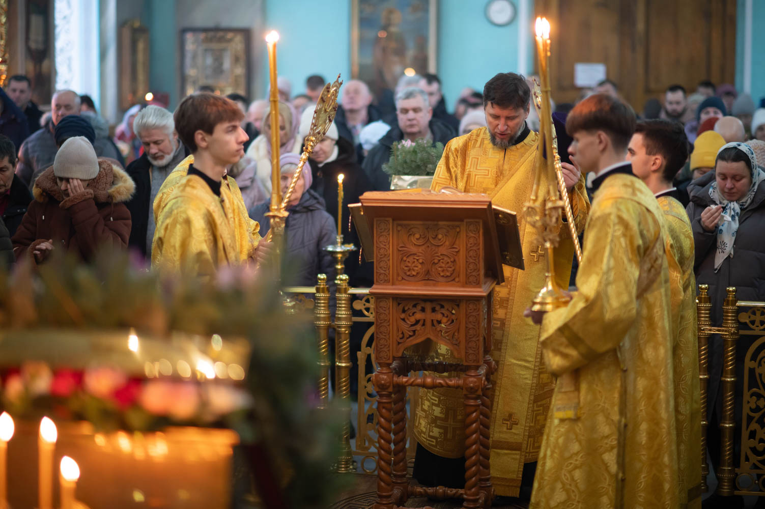За богослужением были вознесены сугубые молитвенные прошения о восстановлении мира.
