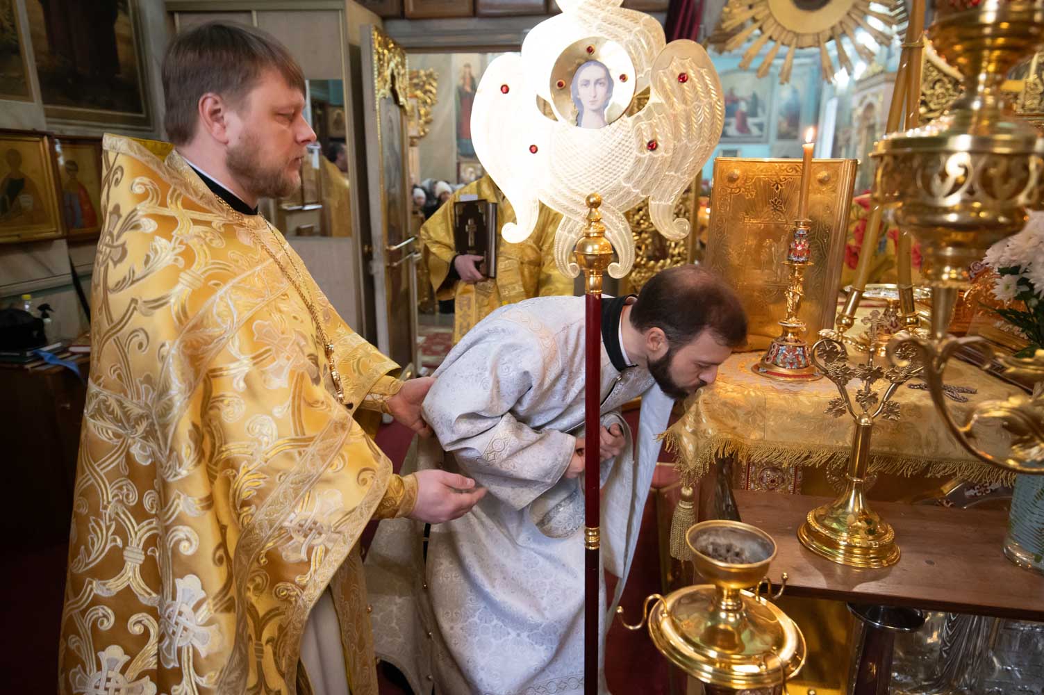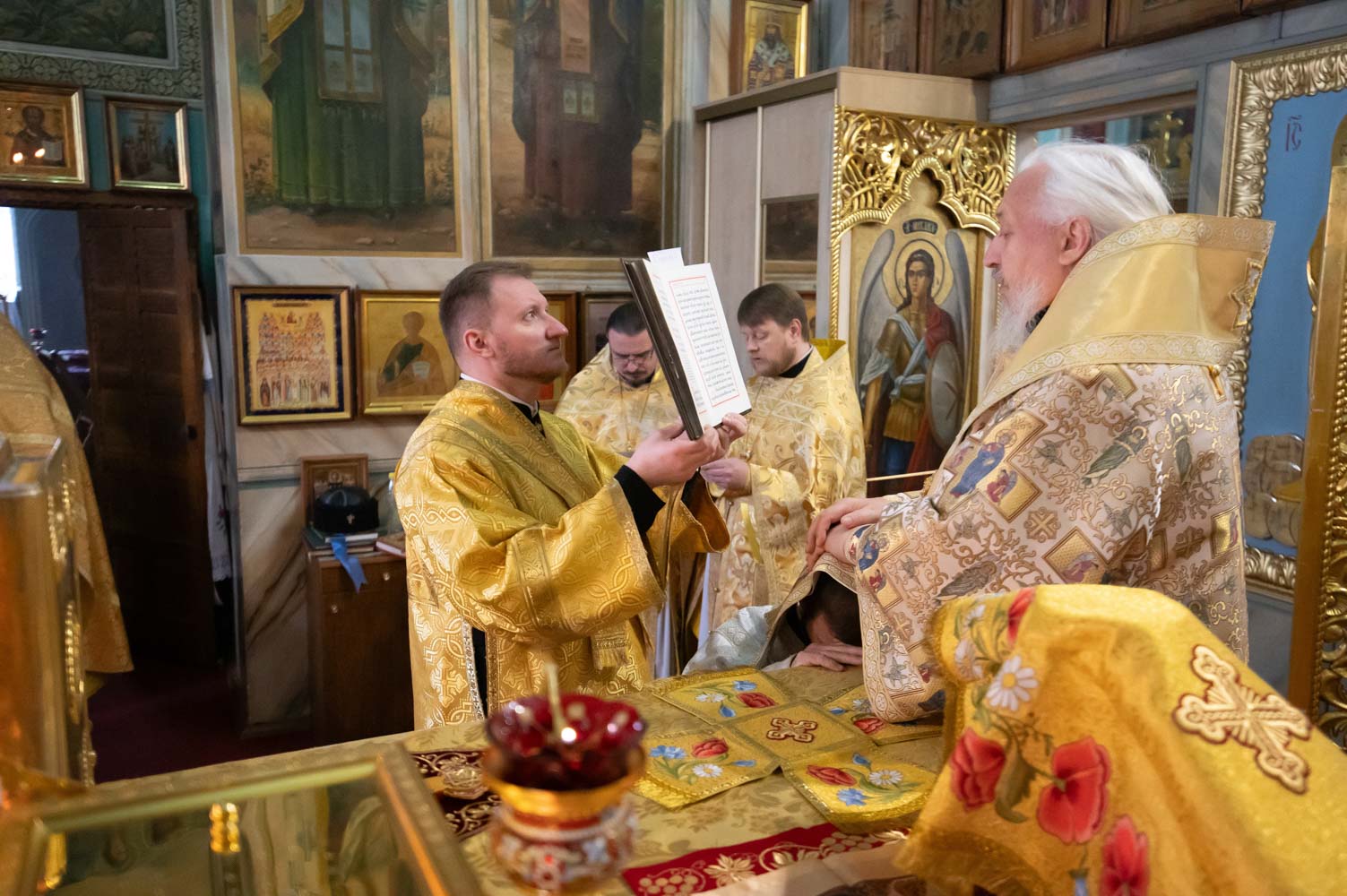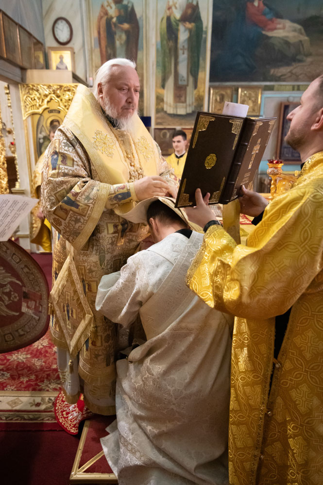 За Литургией Высокопреосвященнейший Стефан совершил иерейскую хиротонию диакона Дионисия Нездвецкого во иерея. А также диаконскую хиротонию Артемия Турыгина, студента 3-го курса Минской духовной семинарии.