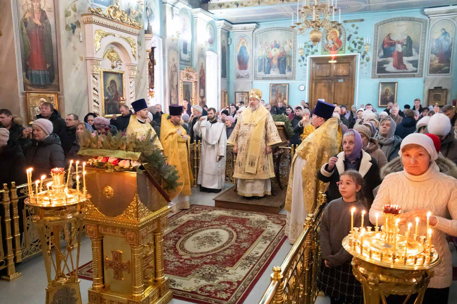 Высокопреосвященнейшему сослужили: секретарь Гомельской епархии протоиерей Георгий Алампиев и духовенство кафедрального собора.