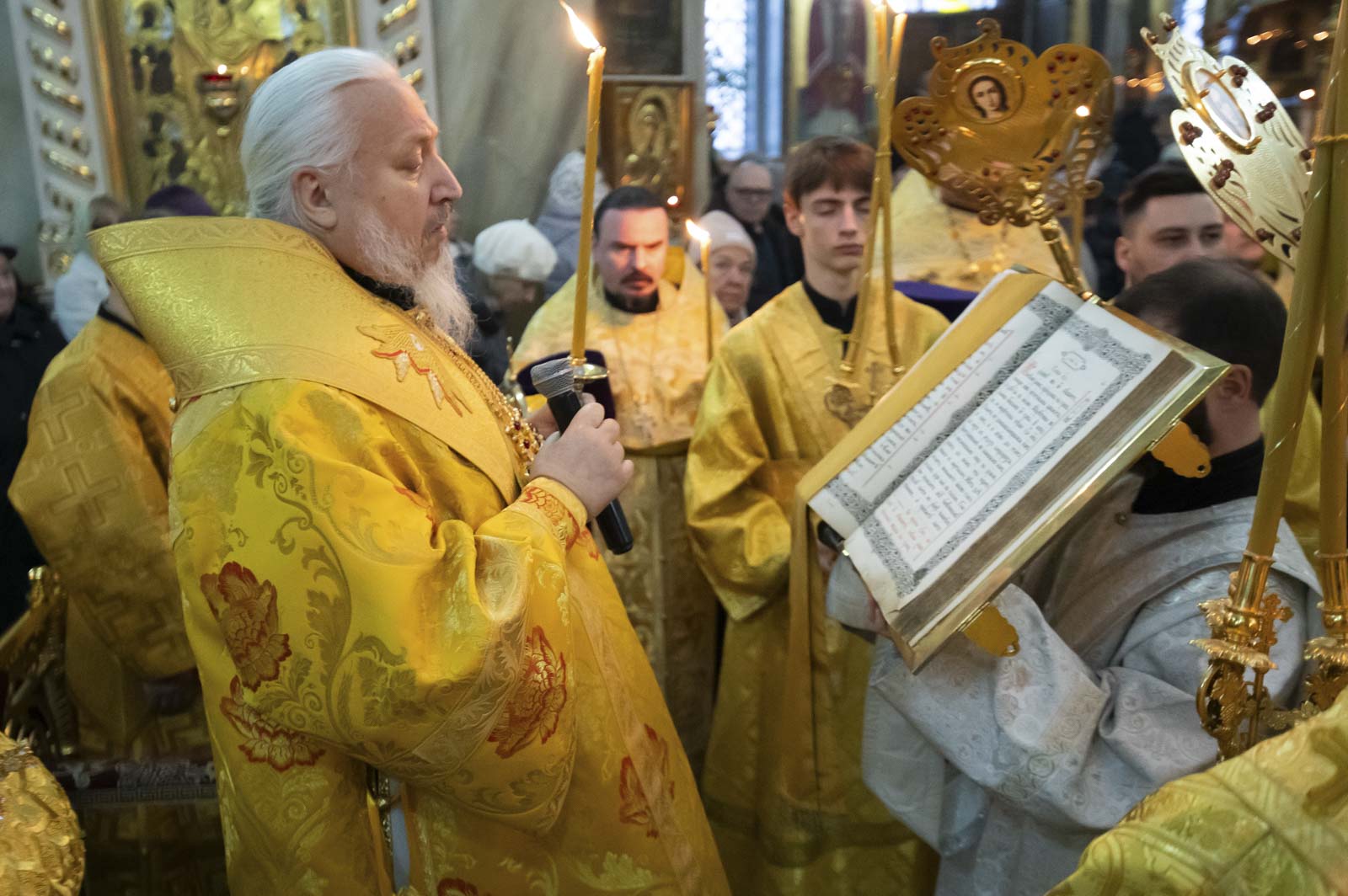 Всенощное бдение 21 февраля 2026 года, в канун Недели сыропустной, воспоминания Адамова изгнания, прощеного воскресенья, Высокопреосвященнейший Стефан, архиепископ Гомельский и Жлобинский, совершил в Петро-Павловском кафедральном соборе г.Гомеля.