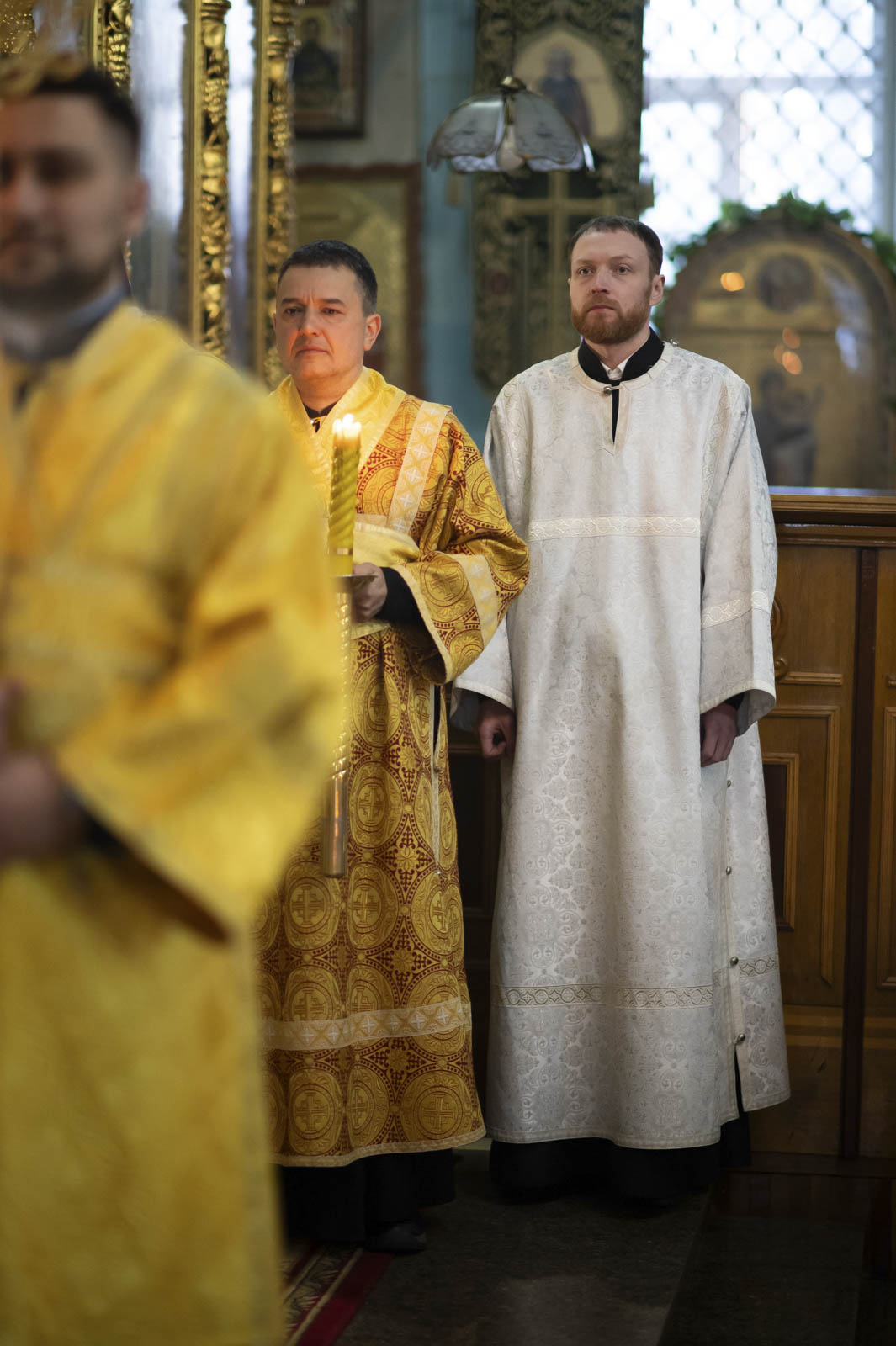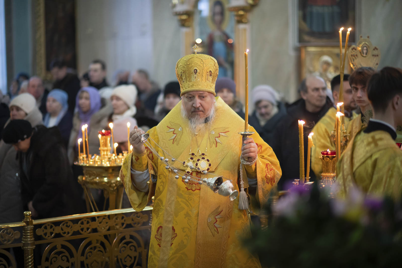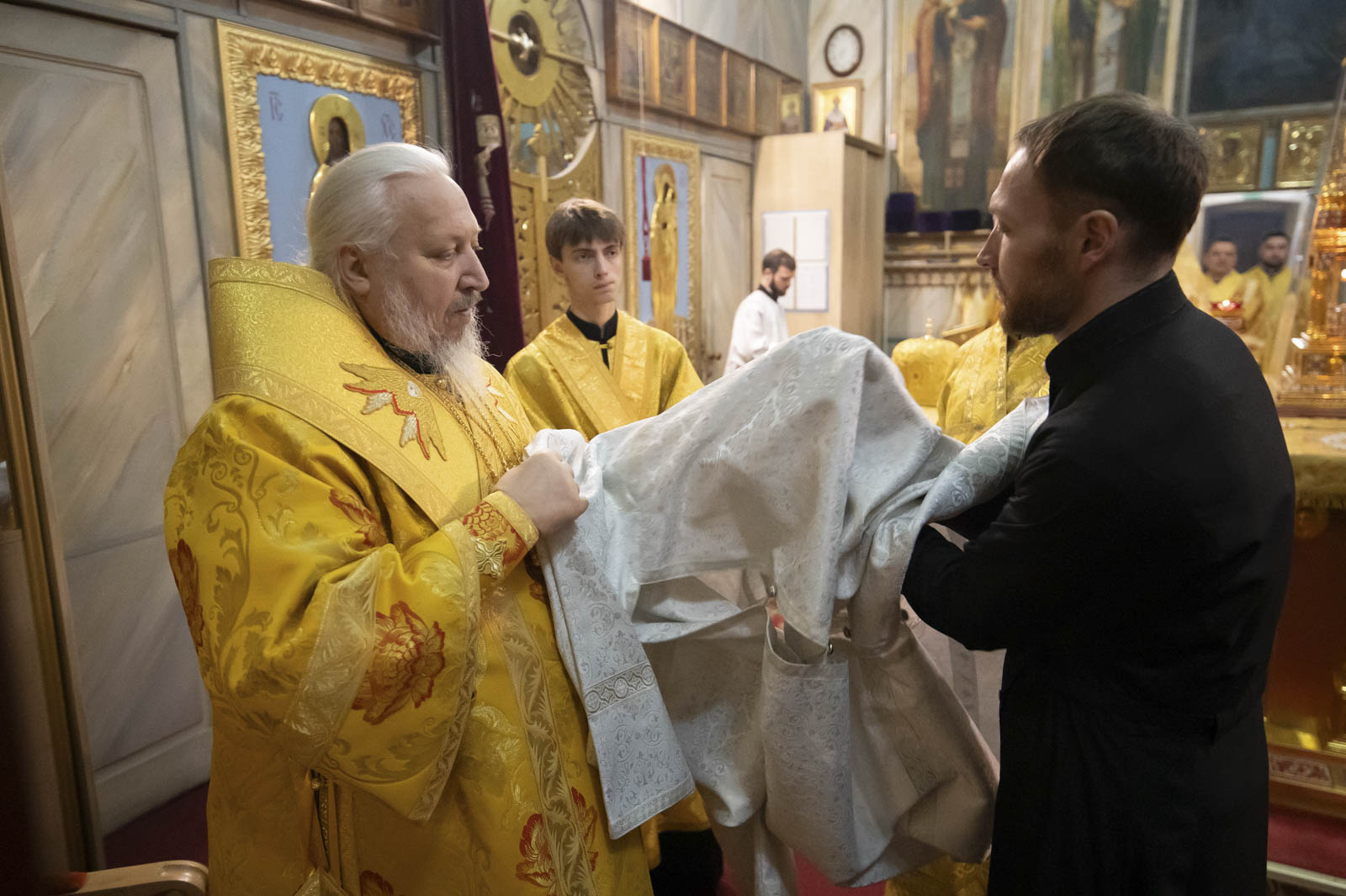 Его Высокопреосвященству сослужили клирики кафедрального собора.