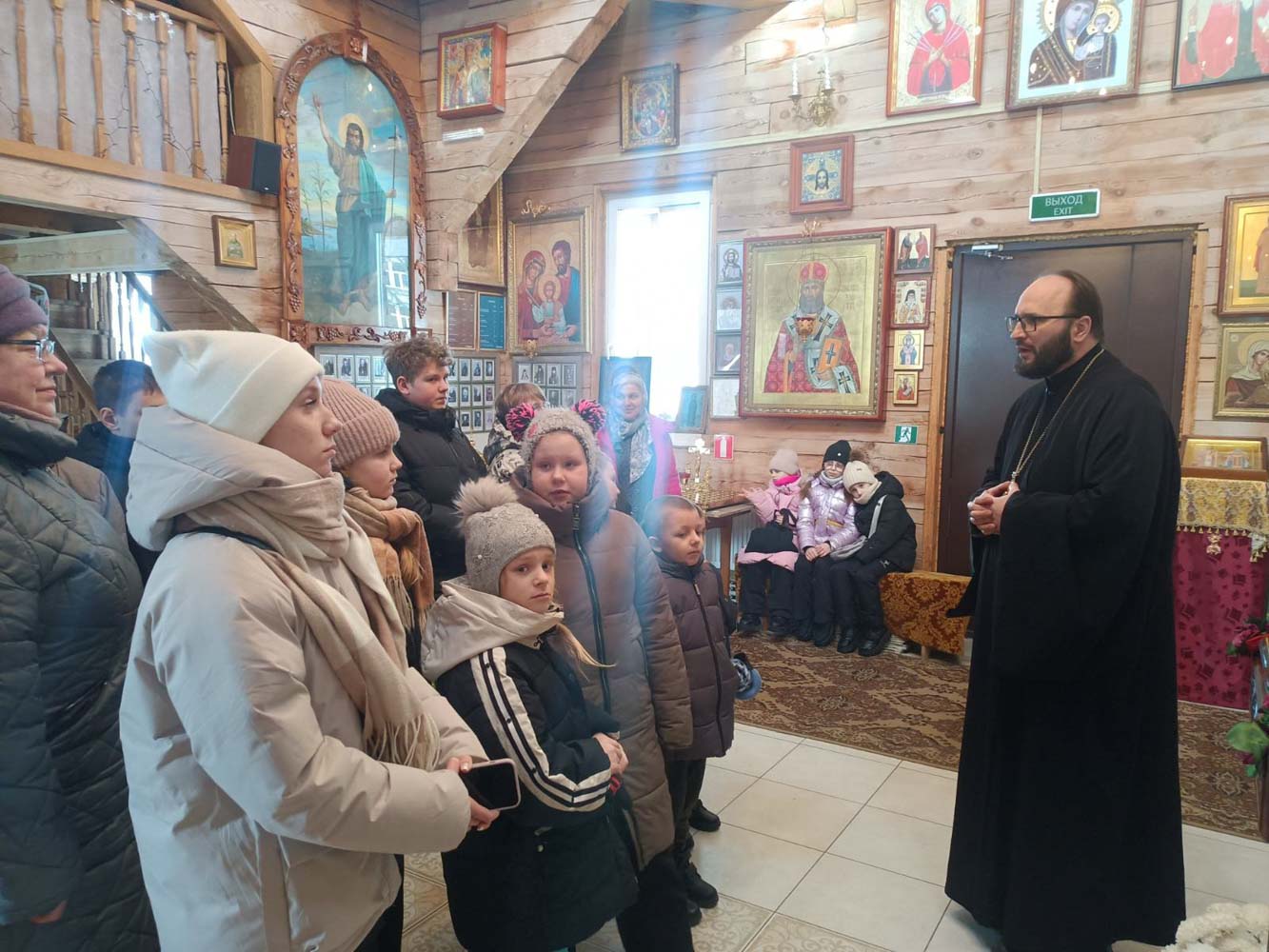 Первым пунктом программы стало посещение храма священномученика Алексия Лельчицкого в г.Гомеле. Настоятель храма, протоиерей Александр Лопушанский, познакомил школьников с устройством церковного пространства, рассказал о его символике и традициях. В завершение встречи священнослужитель вручил участникам экскурсии памятный подарок –   свою книгу «Святой праведный Иоанн Кормянский».