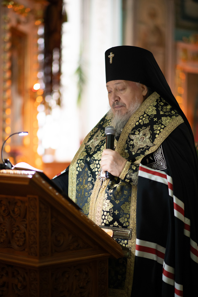 По окончании богослужения Владыка обратился к молящимся со словами архипастырского назидания, пожелал всем верующим с покаянием и смирением пройти поприще святой Четыредесятницы, как можно больше времени уделяя своей душе. Великий пост — это не просто воздержание в пище, но прежде всего время молитвы, покаяния, добрых дел и внутреннего очищения. Владыка напомнил, что важно не только телесное воздержание, но и борьба с греховными помыслами, стяжание смирения и любви.