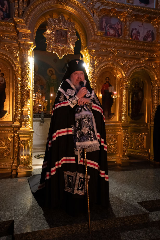 Великое повечерие с чтением покаянного канона преподобного Андрея Критского во вторник первой седмицы Великого поста, 24 февраля 2026г., Высокопреосвященнейший Стефан, архиепископ Гомельский и Жлобинский, совершил в Свято-Никольском мужском монастыре г.Гомеля.
