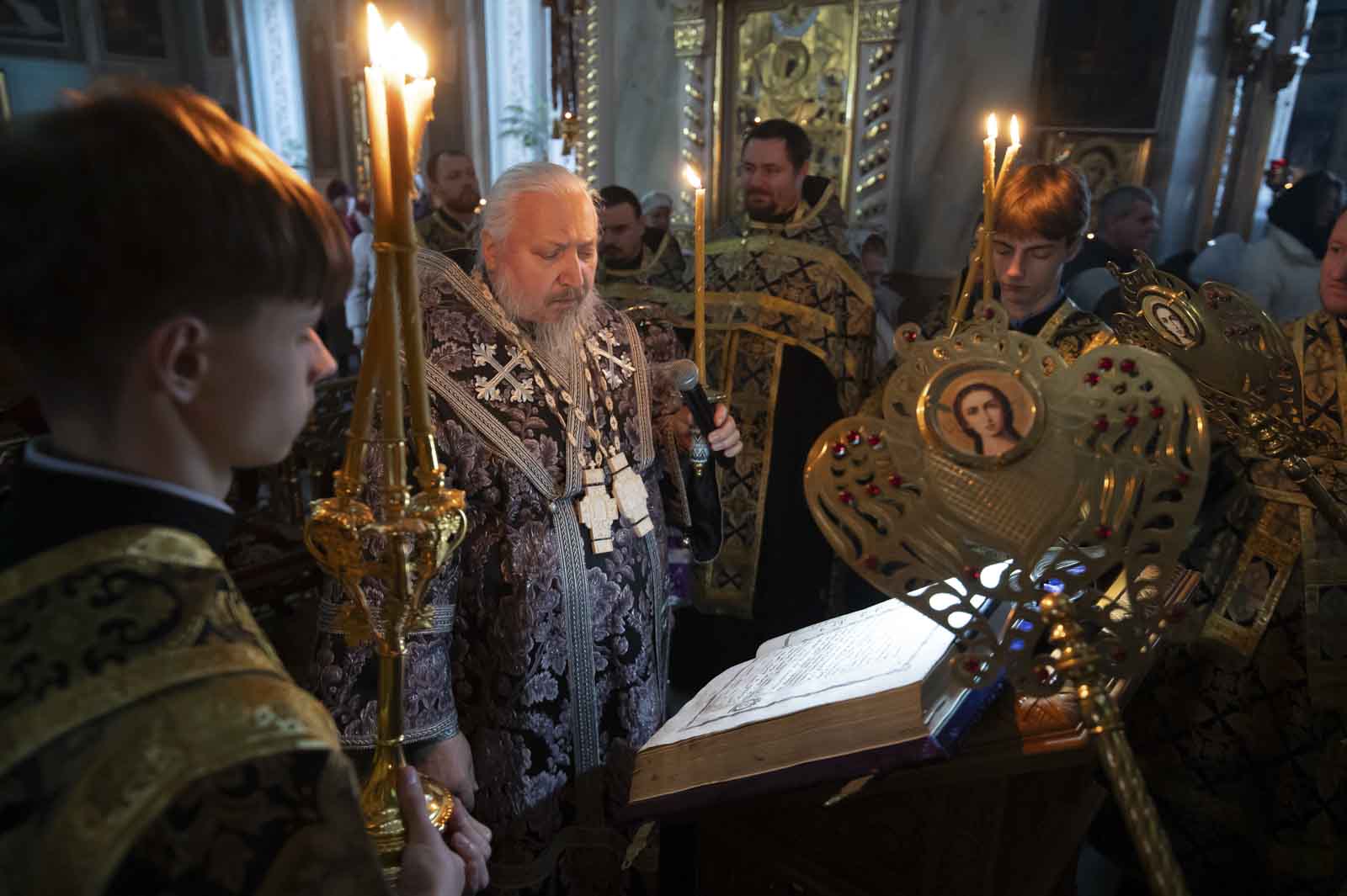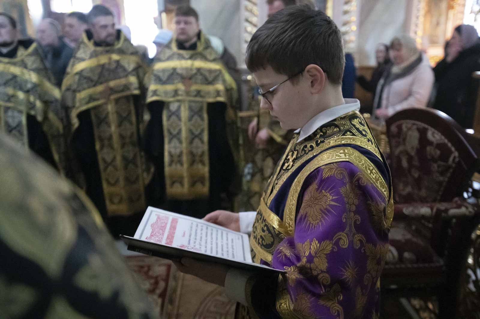 Особенностью этого воскресного вечера стало совершение Пассии — чинопоследования, посвященного Страстям Христовым. Традиция этого богослужения восходит к XVII веку и связывается с именем святителя Петра Могилы, митрополита Киевского. Глубокое по своему содержанию последование включает чтение акафиста Страстям Господним и Евангельского повествования о Крестных муках Спасителя. В этот вечер прозвучали главы из Евангелия от Матфея, возвещающие о предательстве, суде и вольных страданиях Сына Человеческого.