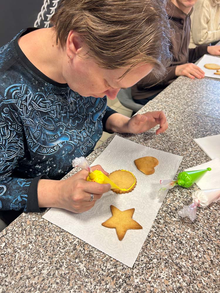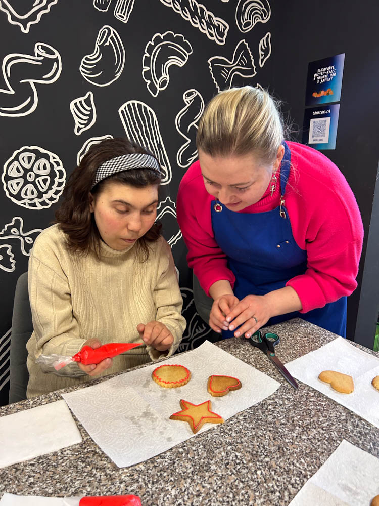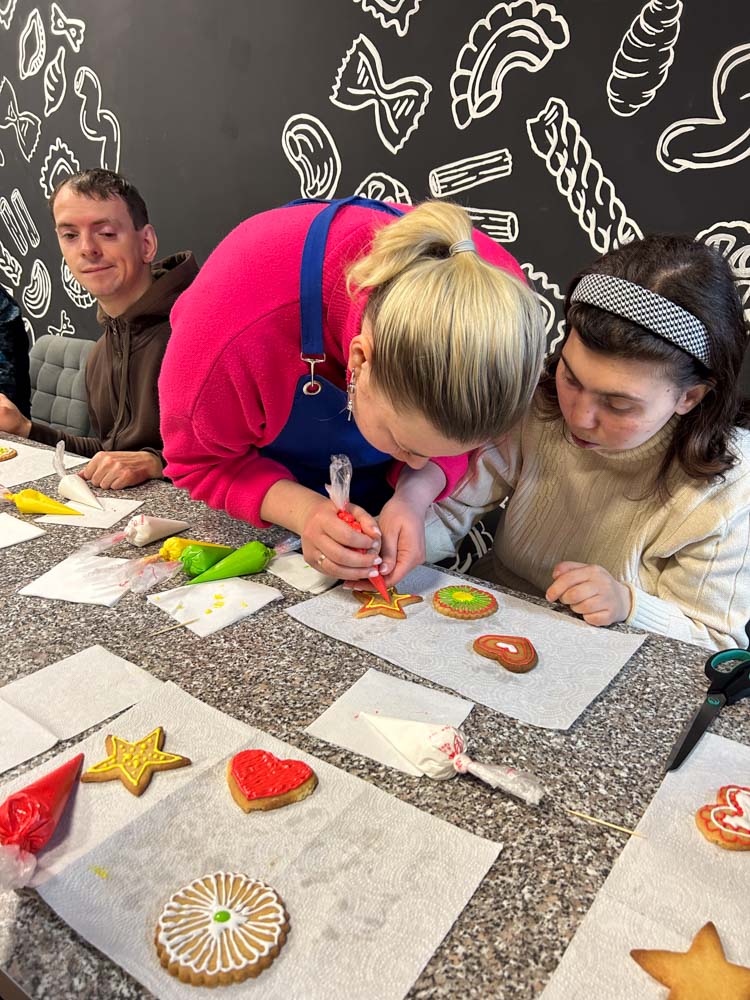 Под руководством шеф-повара Андрея участники разделились на две группы: одни лепили печенье и отправляли его в духовку, другие расписывали готовые пряники. Приготовленные изделия ребята забрали с собой, чтобы порадовать близких – как знак внимания, вложенный в собственный труд.