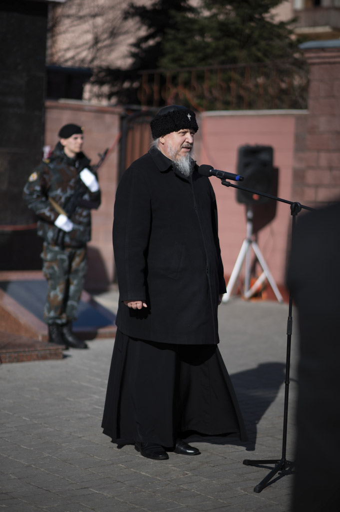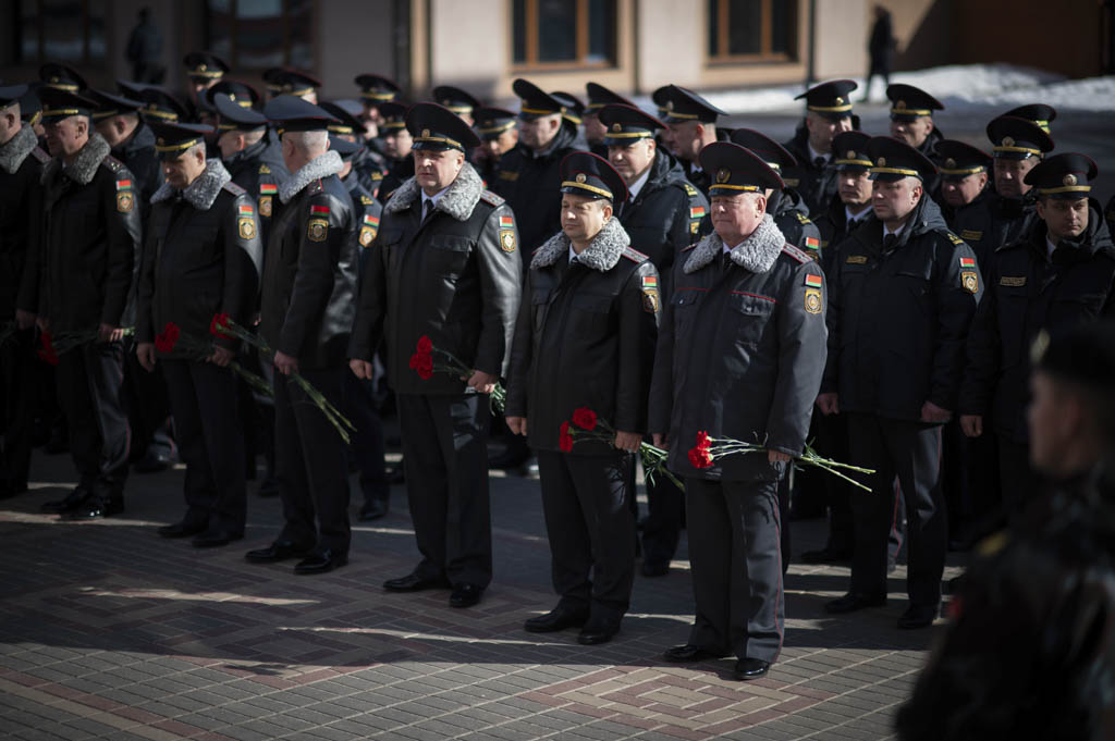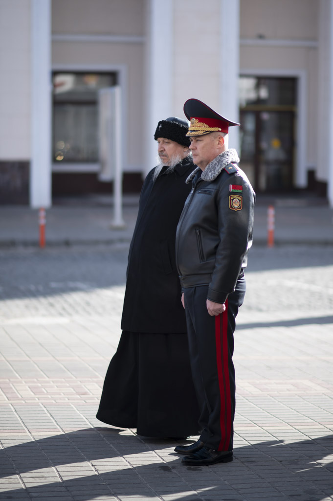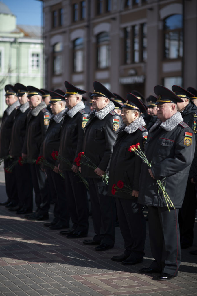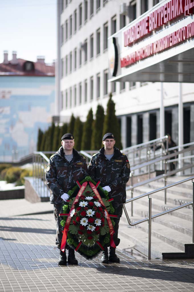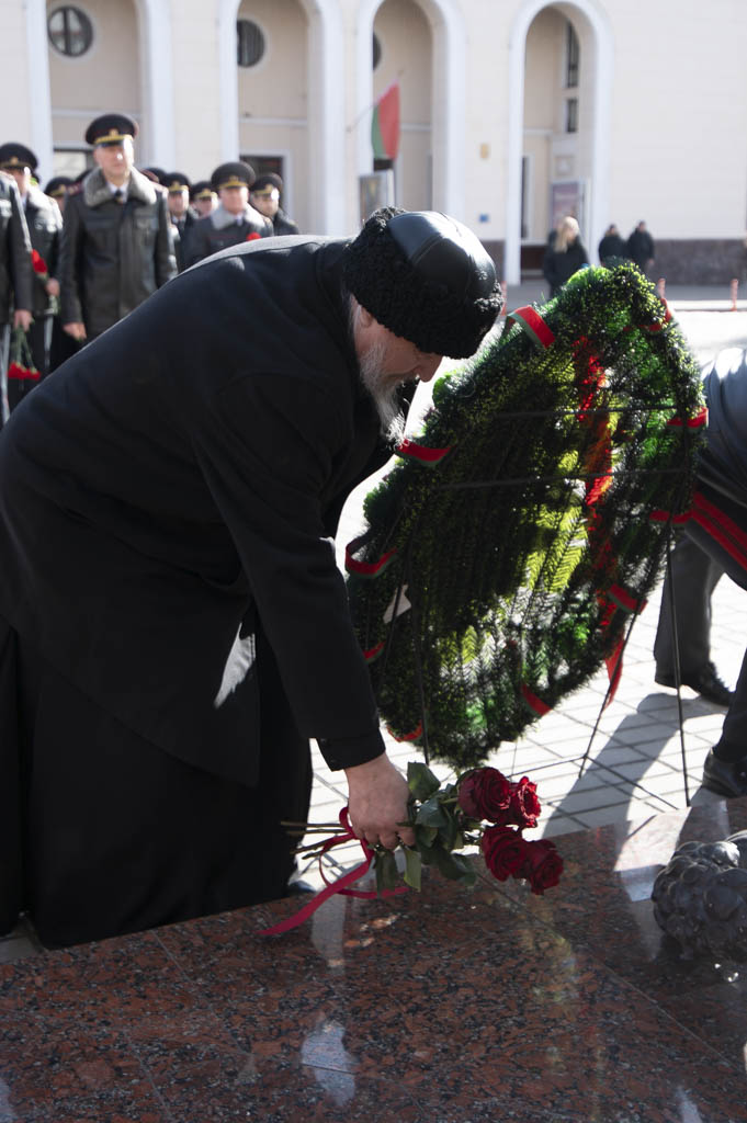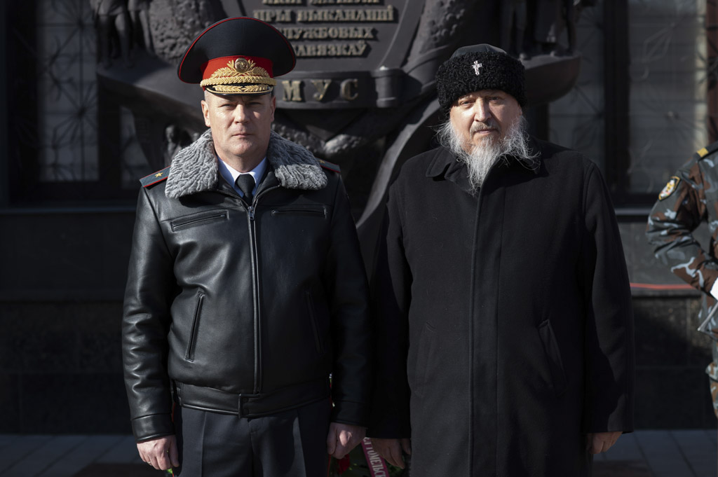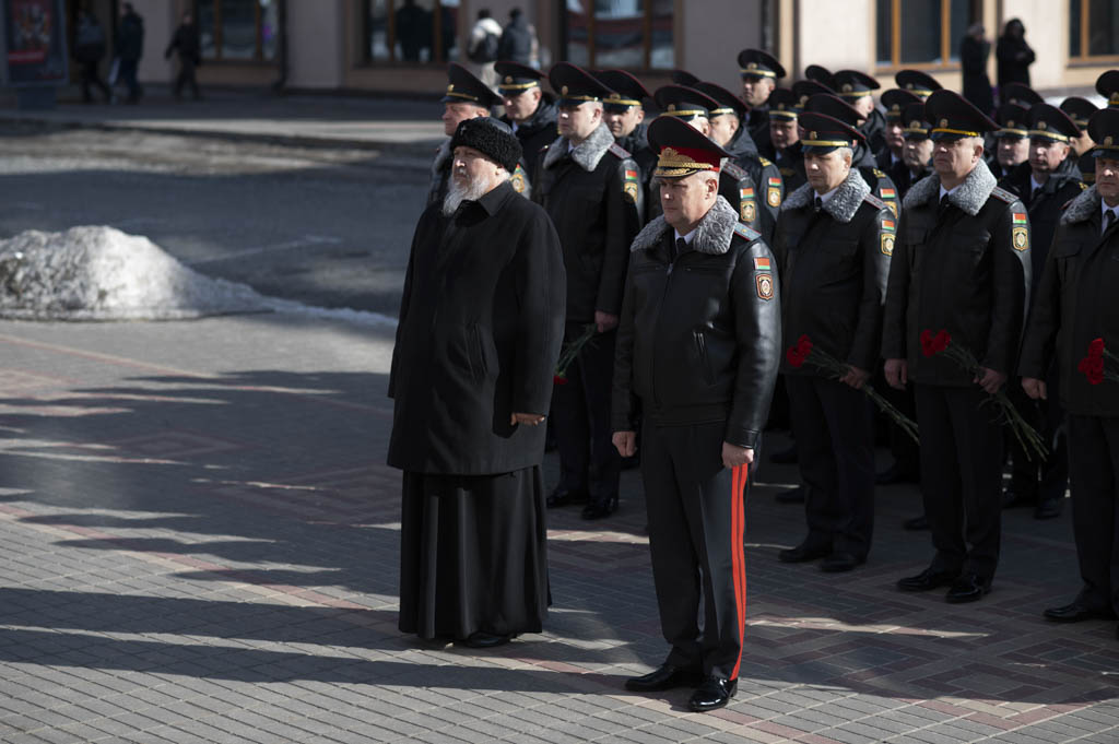 По установившейся традиции, памятные мероприятия начались у мемориала сотрудникам органов внутренних дел, павшим при исполнении служебного долга. Глава ведомства генерал-майор милиции Александр Шастайло совместно с архипастырем и руководящим составом областного управления возложили венки и цветы к подножию памятника. Участники церемонии почтили память погибших минутой молчания, вознося в сердце молитвы об упокоении душ тех, кто исполнил высшую заповедь о любви, пожертвовав собой ради мира и безопасности ближних.
