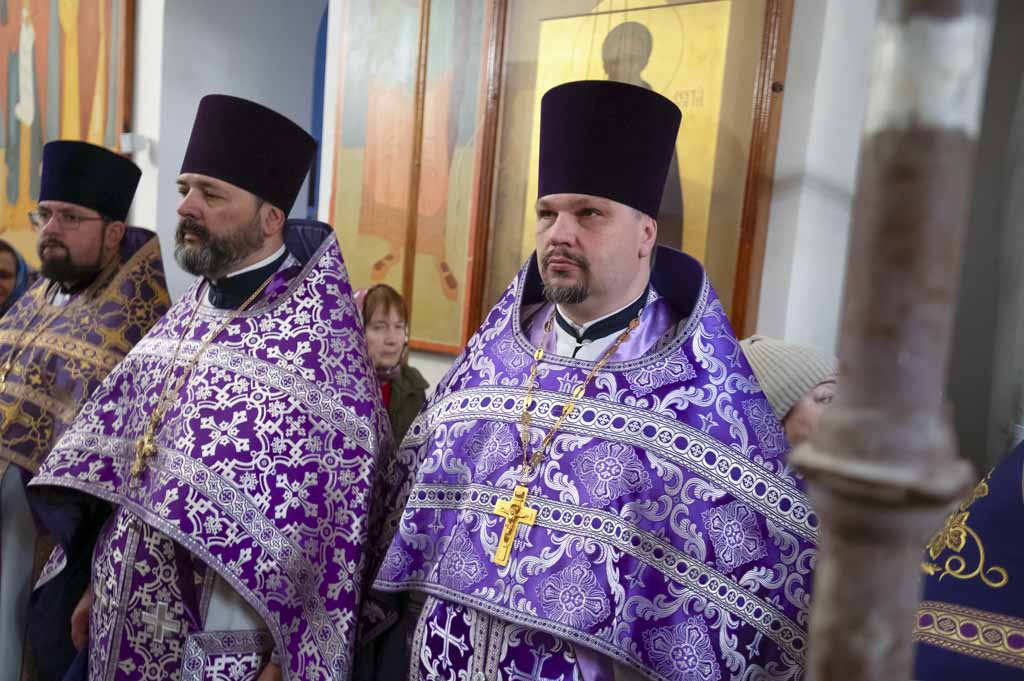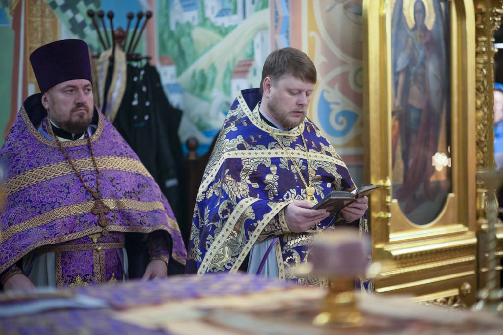 Архипастырям сослужили: секретарь Гомельской епархии протоиерей Георгий Алампиев, благочинный Гомельского округа протоиерей Игорь Ольшанов, благочинный Светлогорского округа протоиерей Александр Кисель, благочинный Гомельского районного округа протоиерей Артемий Кривицкий, благочинный Смолевического округа Борисовской епархии иерей Никодим Пашков, благочинный монастырей игумен Феодорит (Золотарёв), председатель отдела по архитектуре и строительству протоиерей Георгий Тур, ректор Библейско-богословских курсов протоиерей Вадим Качан, председатель церковно-исторической комиссии протоиерей Александр Лопушанский, эконом Гомельской епархии протоиерей Владимир Масалитин, братия Никольской обители в священном сане и духовенство епархии.