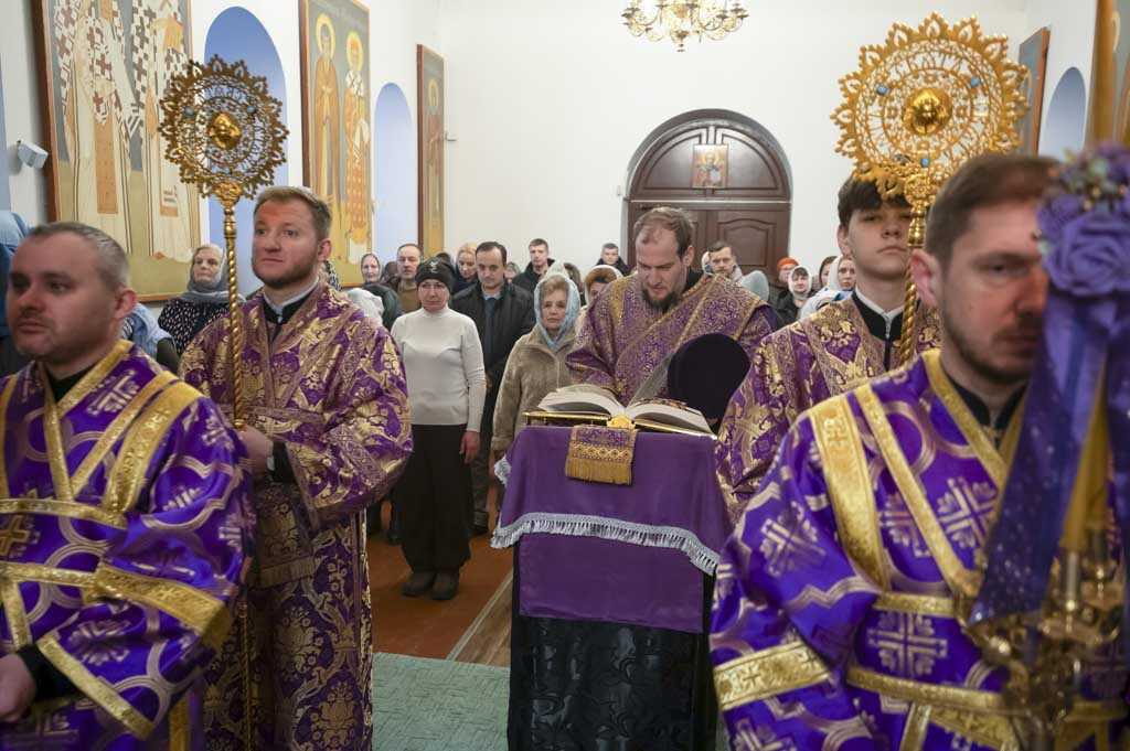 Во время Литургии были вознесены сугубые молитвенные прошения о восстановлении мира.