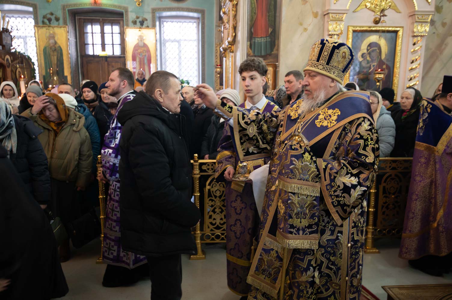 По окончании богослужения владыка помазал верующих освященным елеем и обратился к молящимся со словами архипастырского назидания.