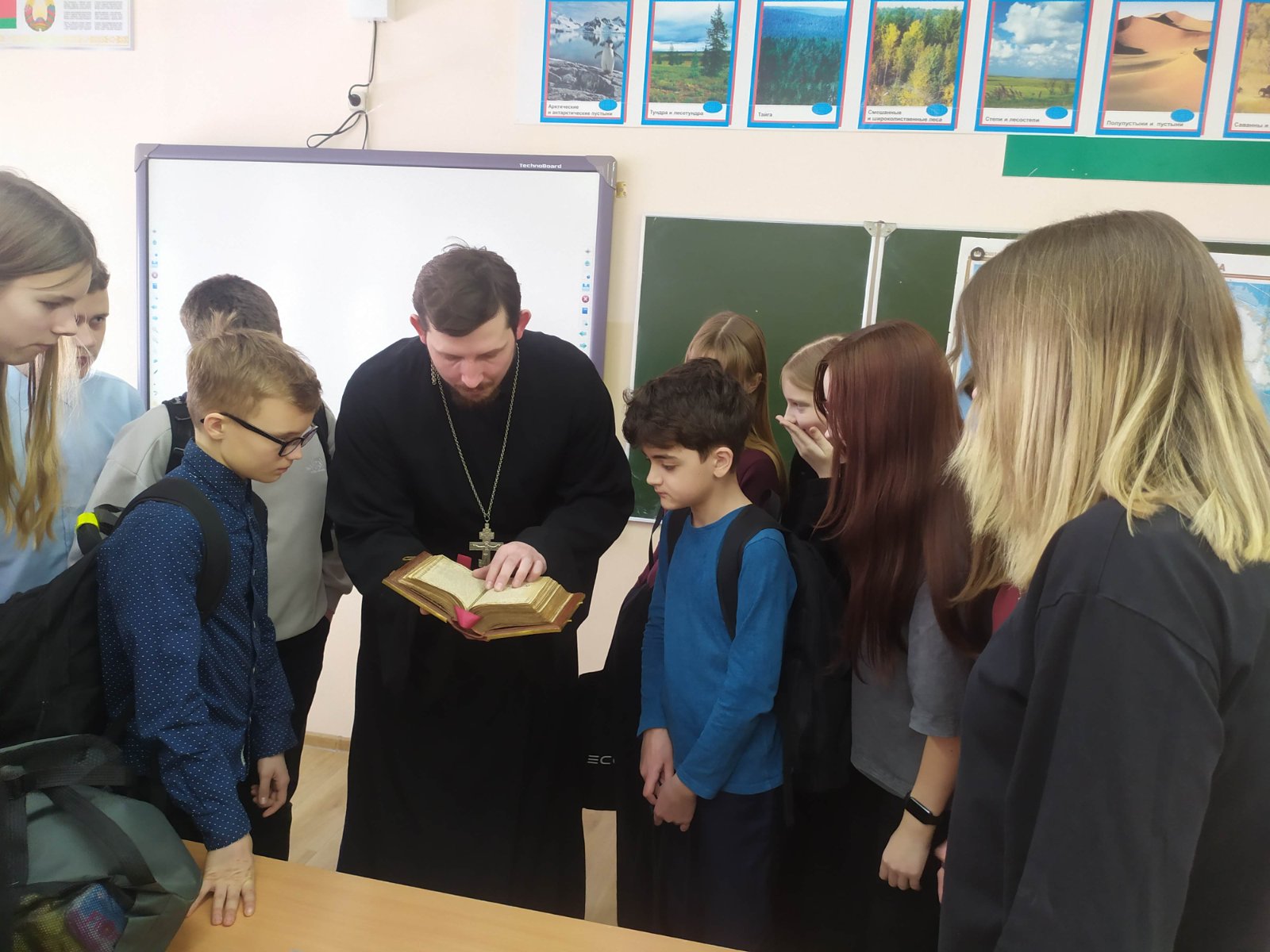 Священник напомнил о духовном подвиге братьев Кирилла и Мефодия, которые создали «глаголицу» и перевели на старославянский язык большую часть Библии. За историческими датами школьники увидели большее: ежедневное чтение Евангелия как жизненную необходимость.