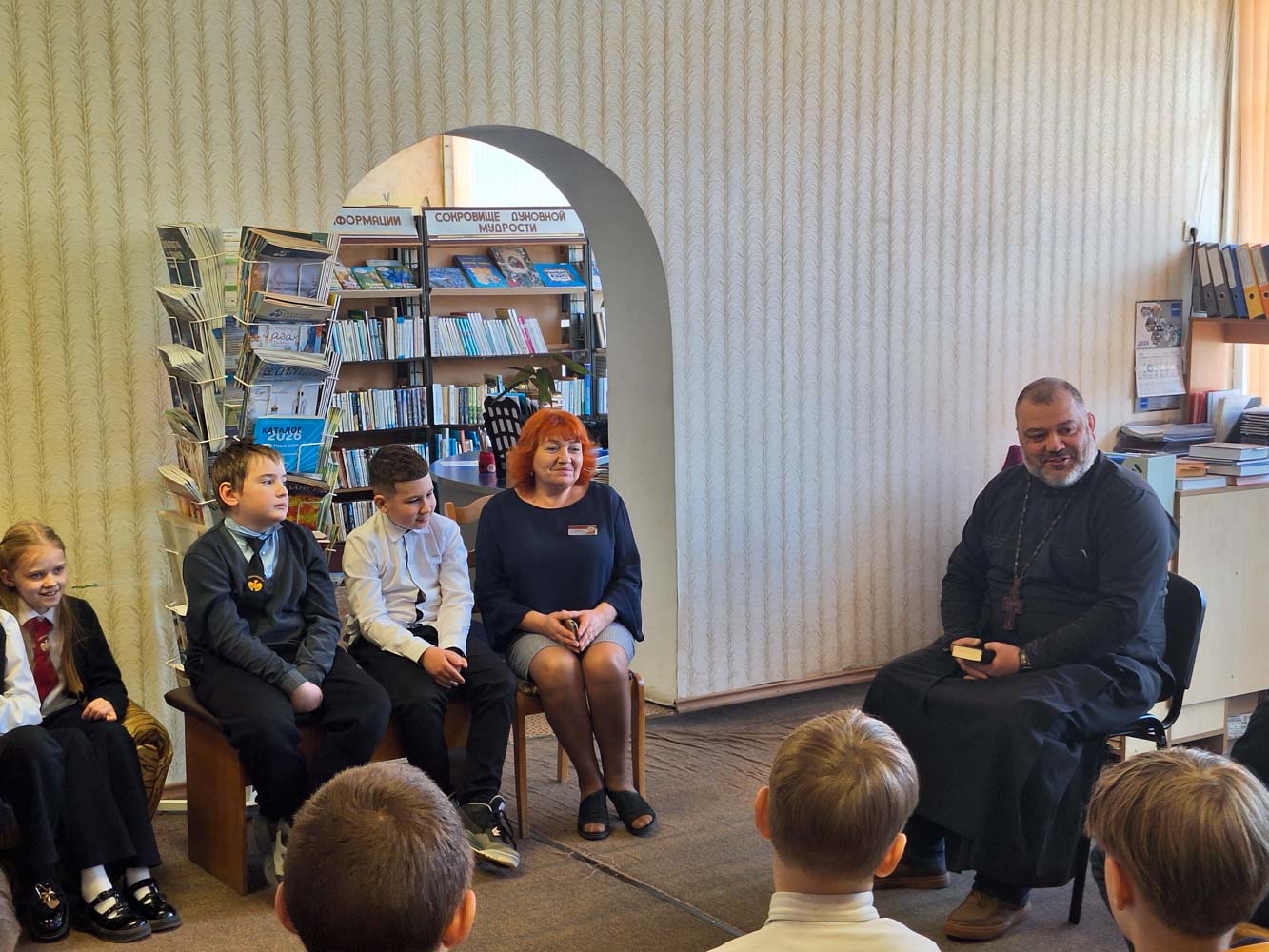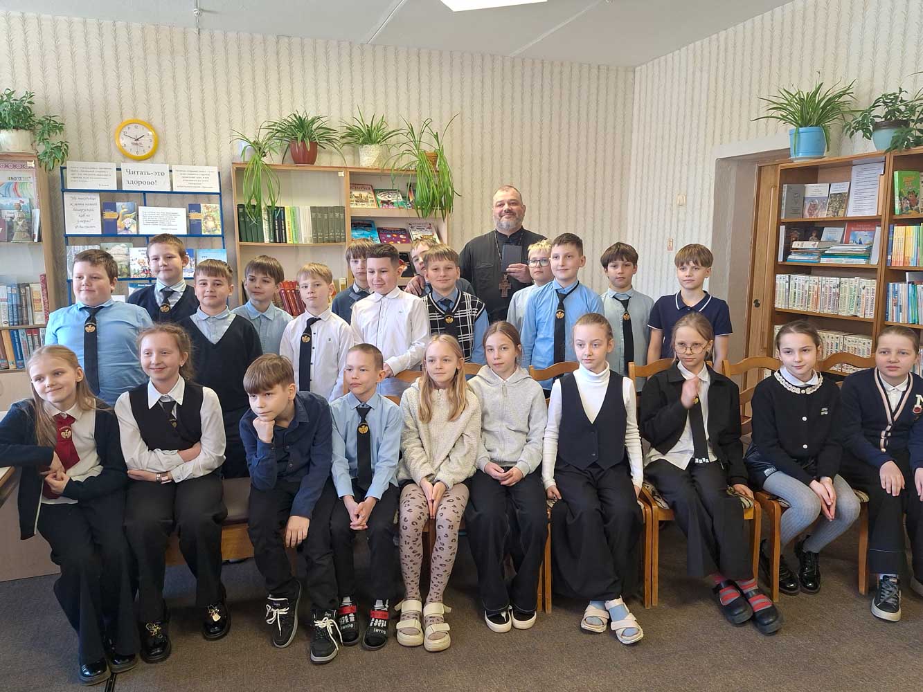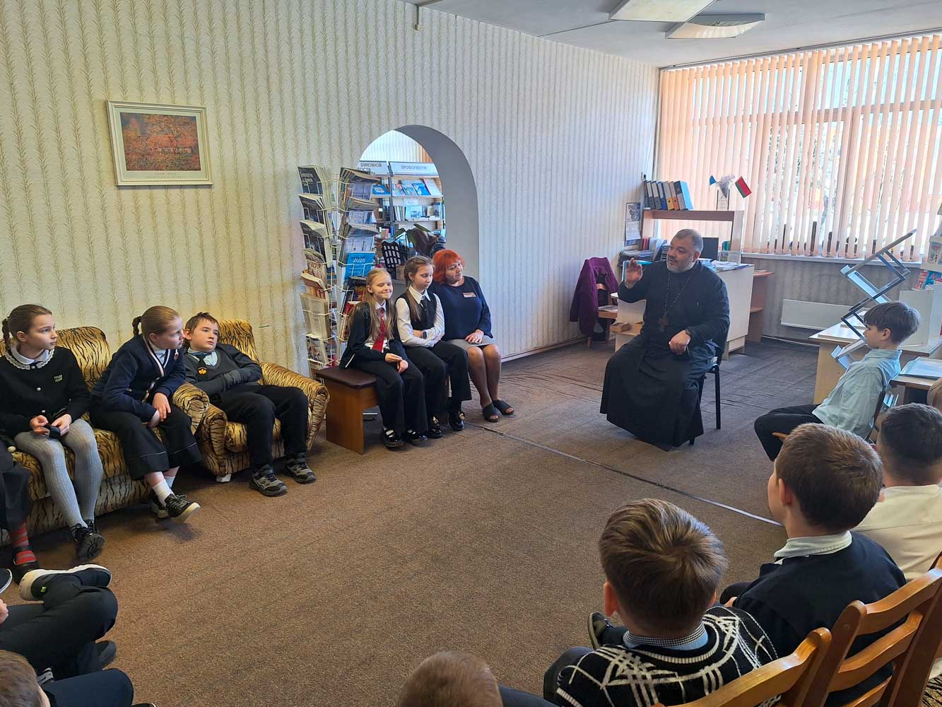 В ходе беседы священнослужитель рассказал детям о главной книге христиан — Библии, а также об истории её печатного издания. Школьники узнали, какое значение Священное Писание имеет в жизни верующего человека.