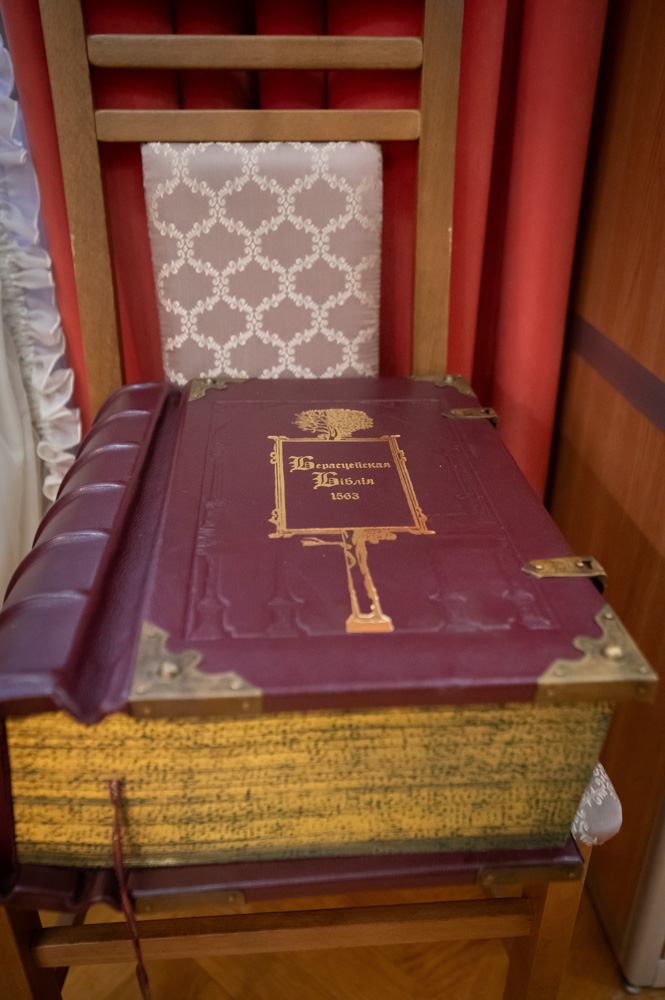 Экспозиция размещена в Музее редкой книги и включает раритетные издания религиозного содержания, а также литургические церковно-служебные книги.