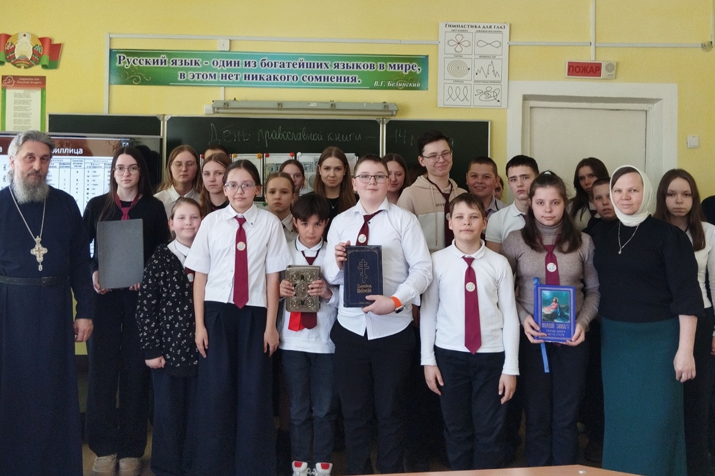 В Круговец-Калининской средней школе настоятель Никольского храма агрогородка Ленино протоиерей Василий Грек провел видеолекторий для учащихся 5–10 классов. Школьники изучили историю издания первой печатной книги «Апостол» и основы церковнославянской грамоты. Под руководством пастыря ученики практиковались в чтении богослужебных текстов и разборе значений древних слов. Протоиерей Василий напомнил детям, что ежедневное обращение к качественной литературе является необходимым условием интеллектуального и духовного развития.
