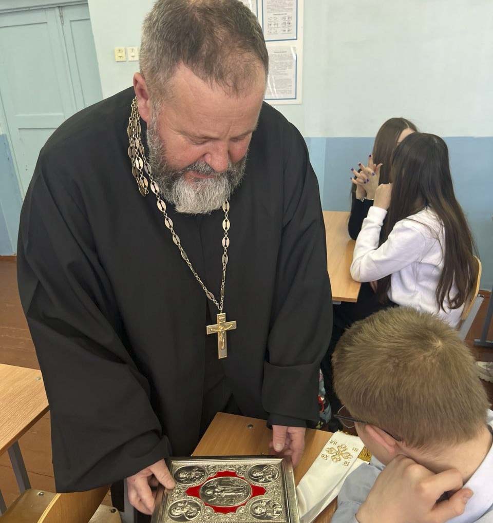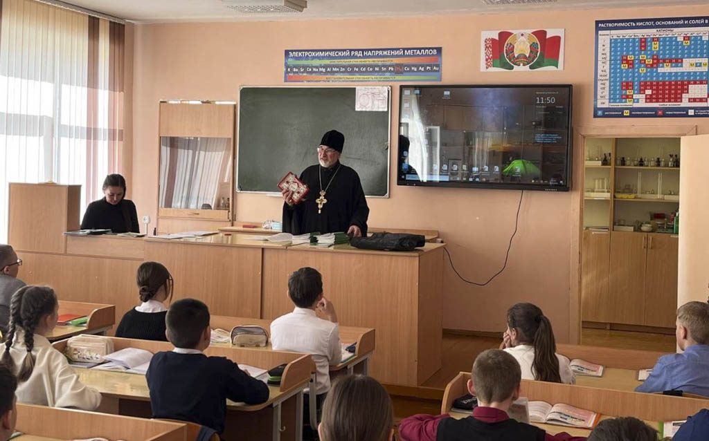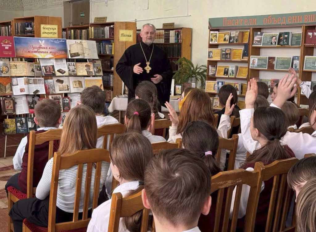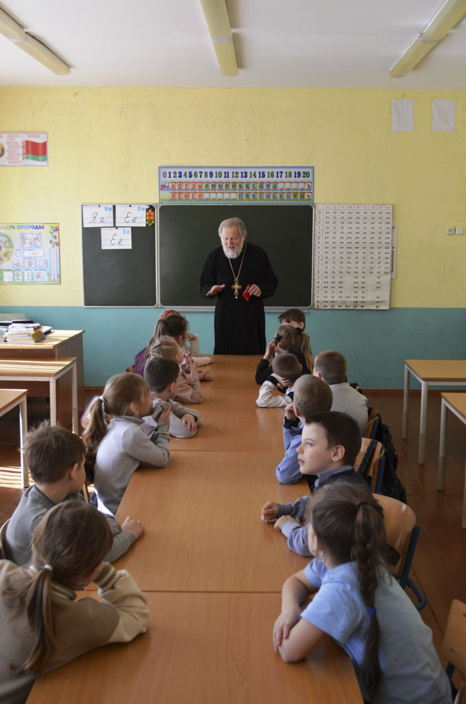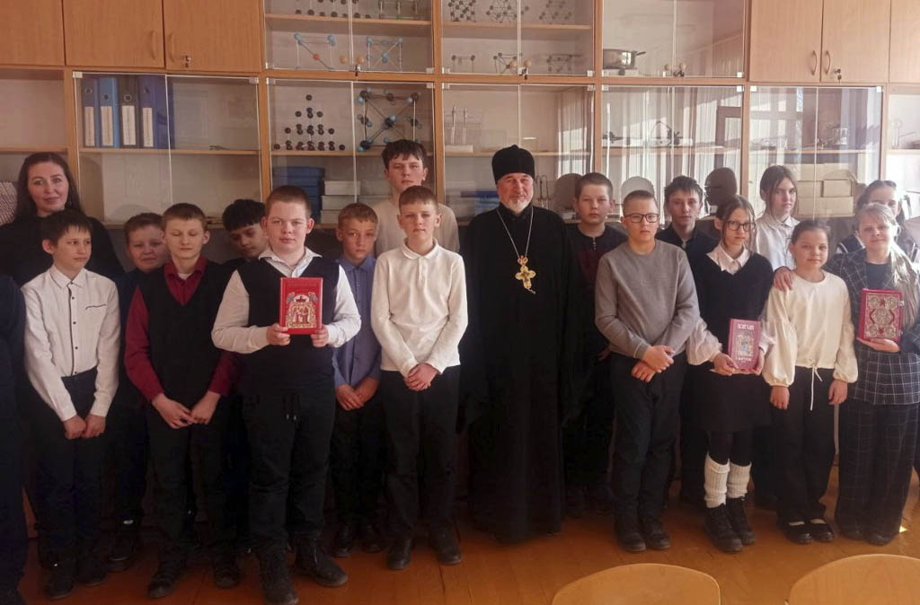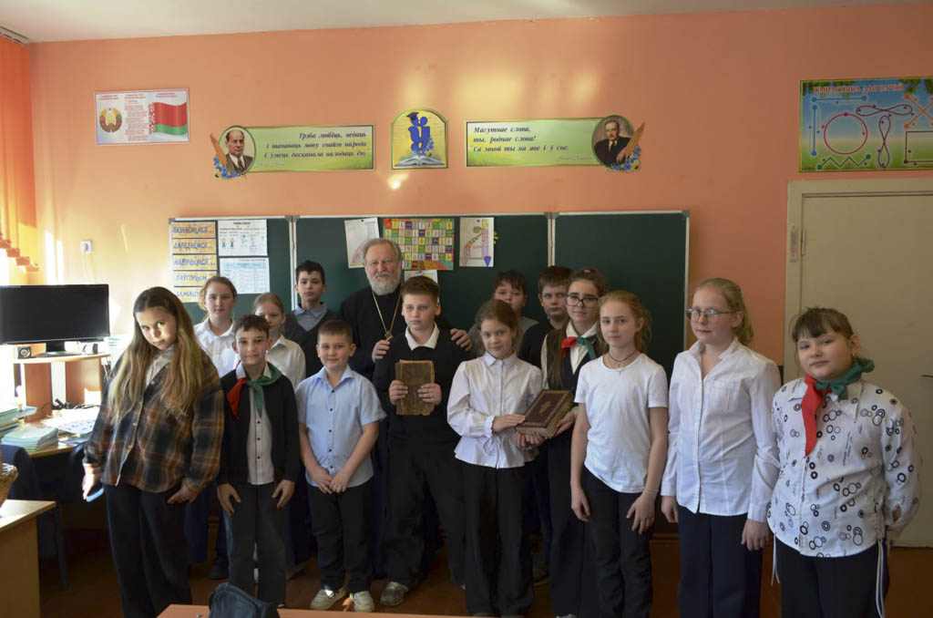 Настоятель прихода храма святого великомученика Георгия Победоносца аг. Красный Берег протоиерей Пётр Петрушенко 12 марта с наступающим Днём православной книги поздравил с шестиклассников Краснобережской средней школы.