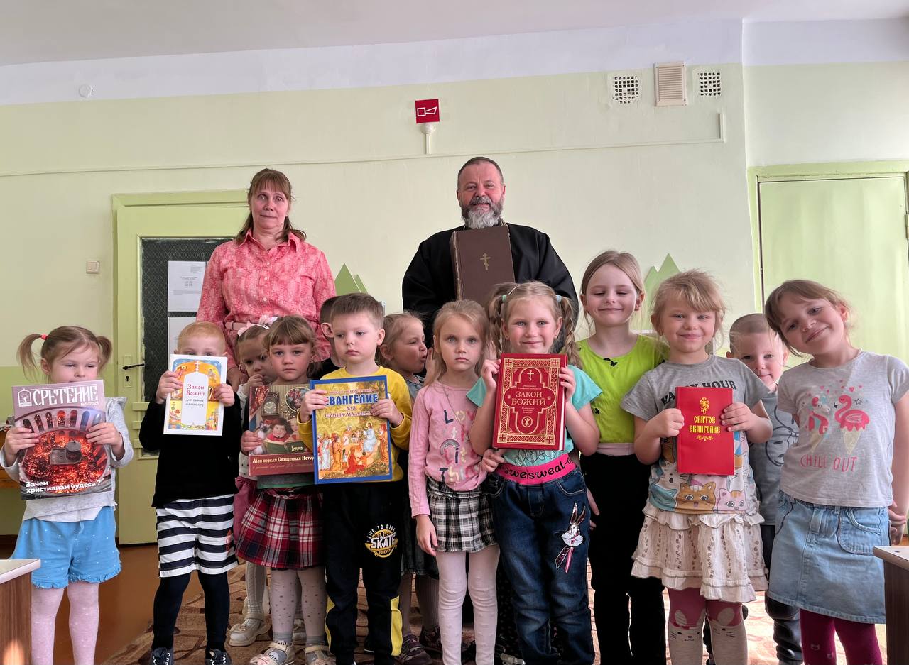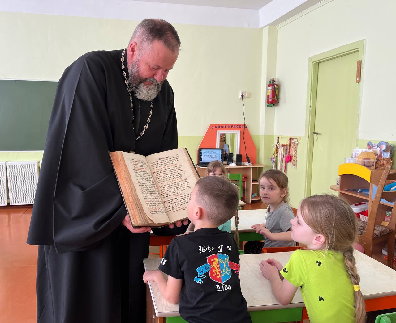 В Пиревичском детском саду 13 марта прошло мероприятие «Православная книга — детям» для воспитанников средней и старшей групп. К ребятам обратился настоятель прихода храма Всех Святых иерей Василий Терешков. Он просто и понятно рассказал, почему православные книги важны для человека с самого детства. Во время встречи дети говорили о доброте, внимании друг к другу, умении помогать и сопереживать. Ребята узнали, что духовная книга может учить сердце: помогать замечать чужую боль, радоваться добрым поступкам и стараться самому делать добро. Для воспитанников она стала не только знакомством с православной книгой, но и небольшим шагом к пониманию того, как важно хранить в сердце добро.