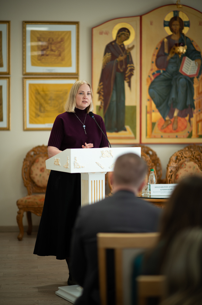 В ходе мероприятия Кристина Игоревна Новосёлова, соучредитель и член правления Благотворительного фонда «Покров», заместитель директора Центра, представила опыт комплексной работы организации в духовной и нравственной сферах. Психолог фонда Руслан Александрович Писаренко презентовал проект «Путь к мужеству», направленный на духовно-нравственное становление молодых людей.
