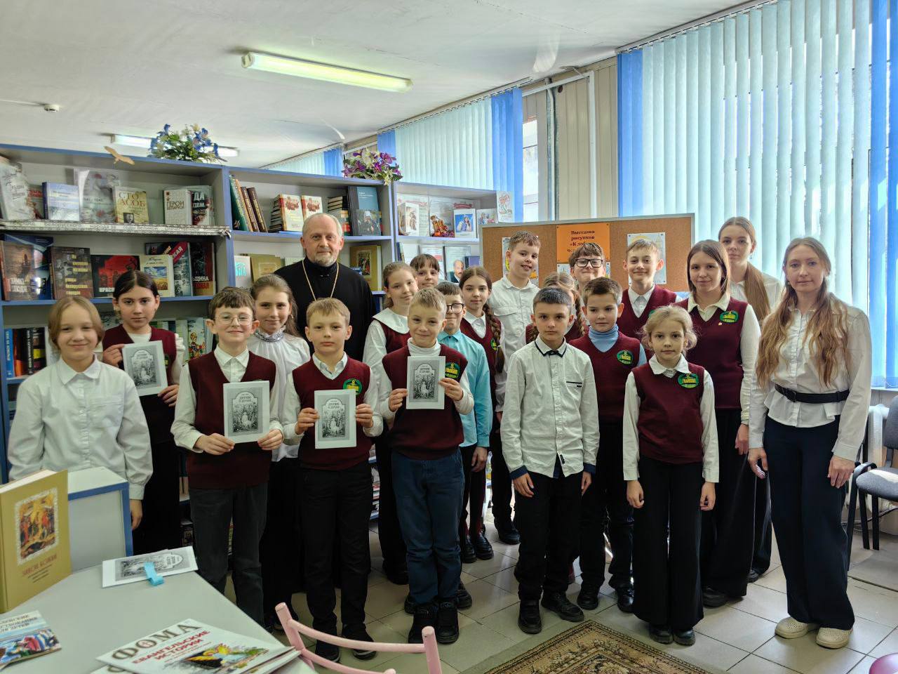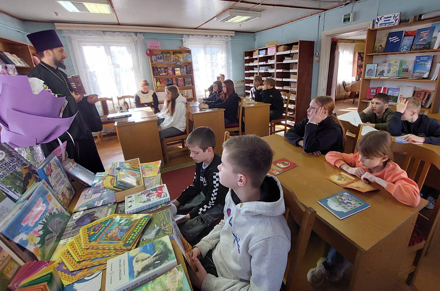 15 марта «час духовности» прошёл в городской библиотеке. Сюда пришли воспитанники социально-педагогического центра, для которых слово «поддержка» имеет особое значение. Клирик храма святого мученика Иоанна Воина в г.Жлобине иерей Сергий Плетежов начал разговор с истории «Апостола» Ивана Федорова. Затем перевёл внимание слушателей от дат к смыслам. Внимание было уделено тому, как чтение помогает человеку сохранять внутреннюю устойчивость, внимательнее относиться к окружающим и находить ориентиры в сложных жизненных обстоятельствах. Участники познакомились с изданиями, которые могут стать началом личного пути к осмысленному чтению.