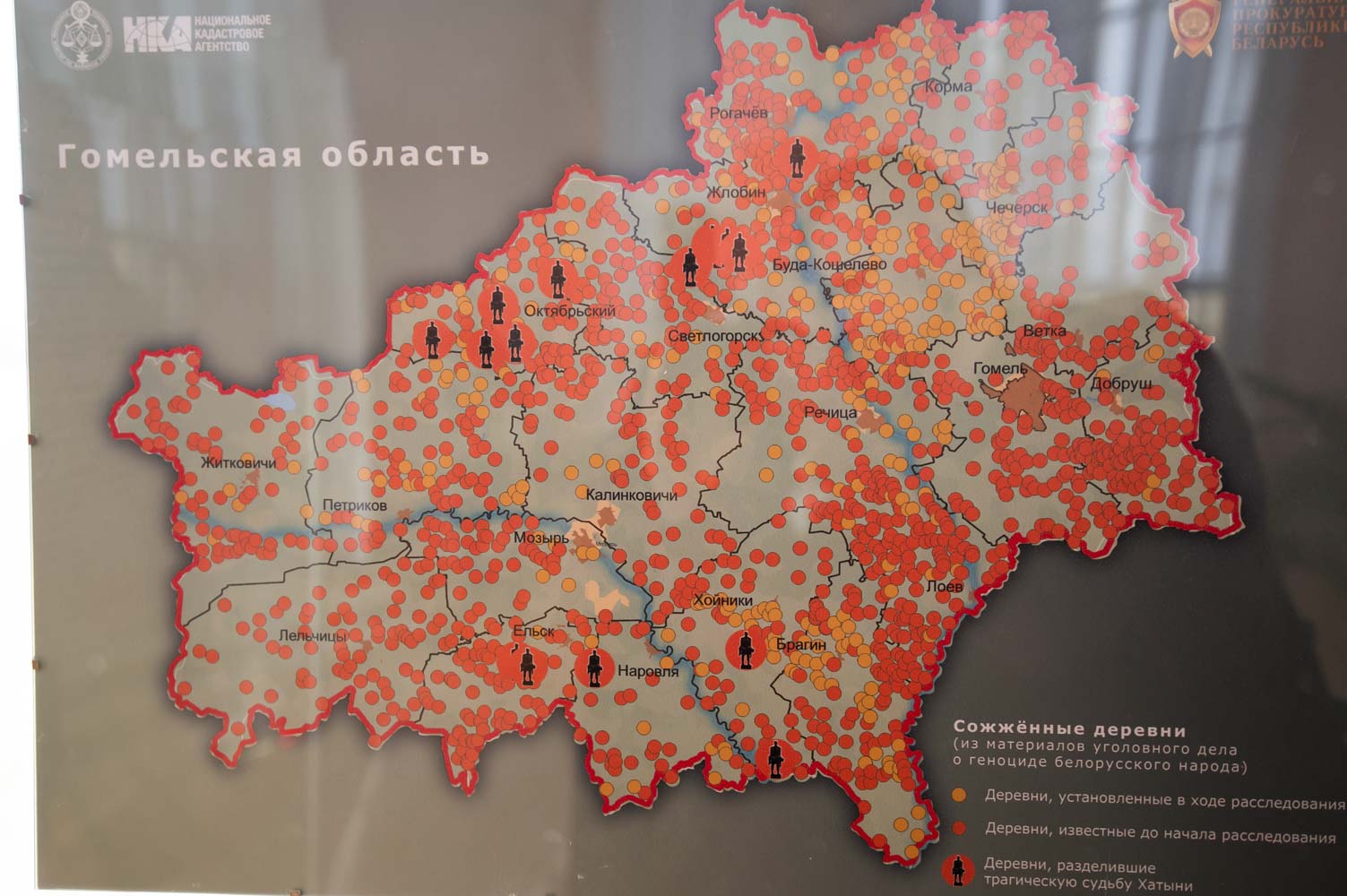 Дата «22 марта 1943 года» стала символом трагедии белорусской деревни. В этот день вместе с жителями была сожжена Хатынь. Подобную судьбу разделили и другие населённые пункты. В Гомельской области насчитывается 19 деревень, повторивших судьбу Хатыни.