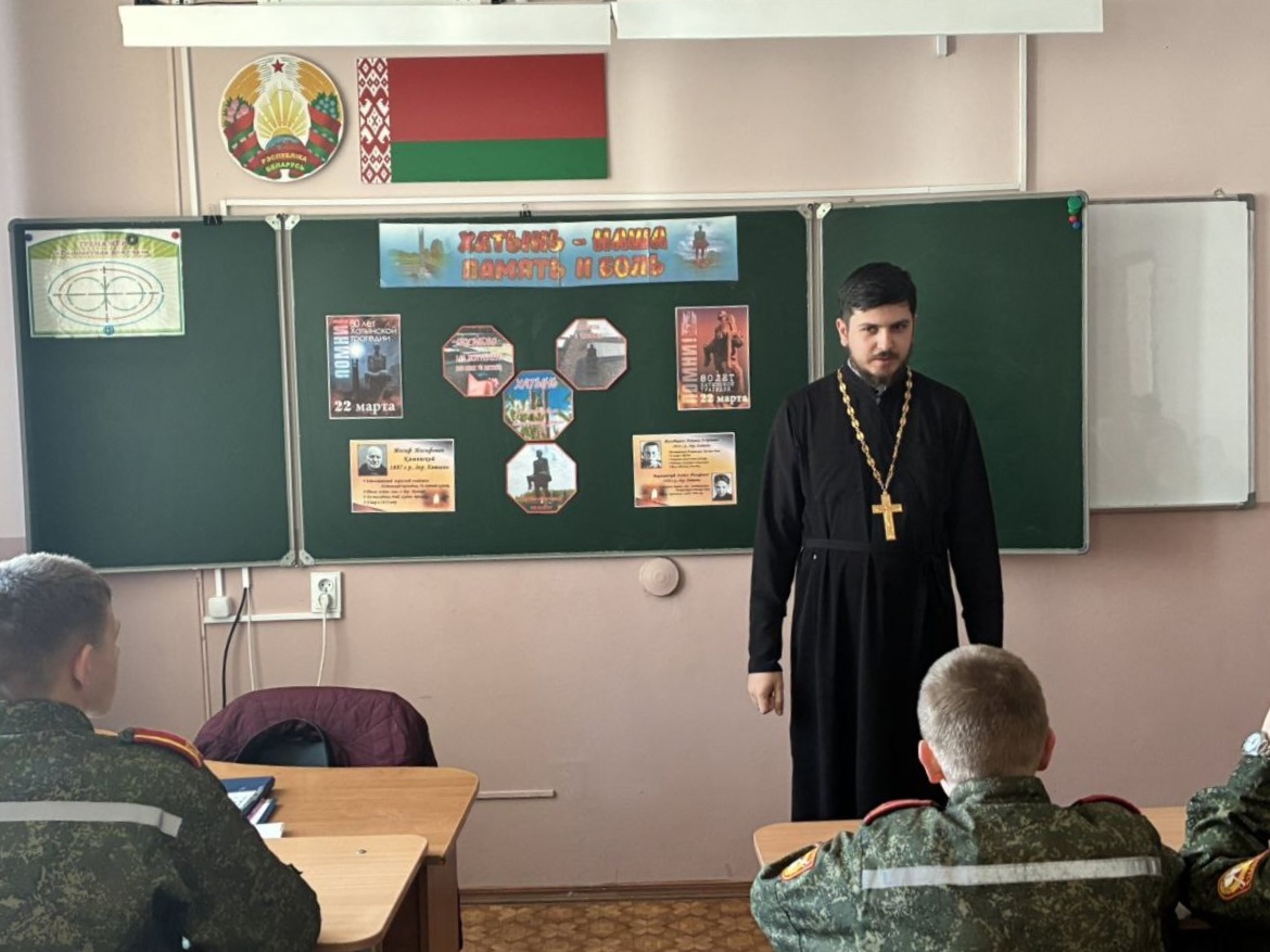 19 марта клирик прихода храма святых благоверных князей Петра и Февронии Муромских иерей Илья Федоров посетил Гомельское кадетское училище. Встреча прошла в преддверии дня памяти жертв деревни Хатынь.