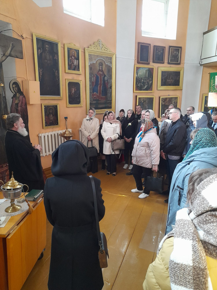 В храме участников акции встретил настоятель прихода, благочинный Чечерского округа протоиерей Геннадий Хаткевич. Священнослужитель познакомил гостей с историей храма, рассказал о его архитектурных особенностях, а также о значении святыни для местных жителей.