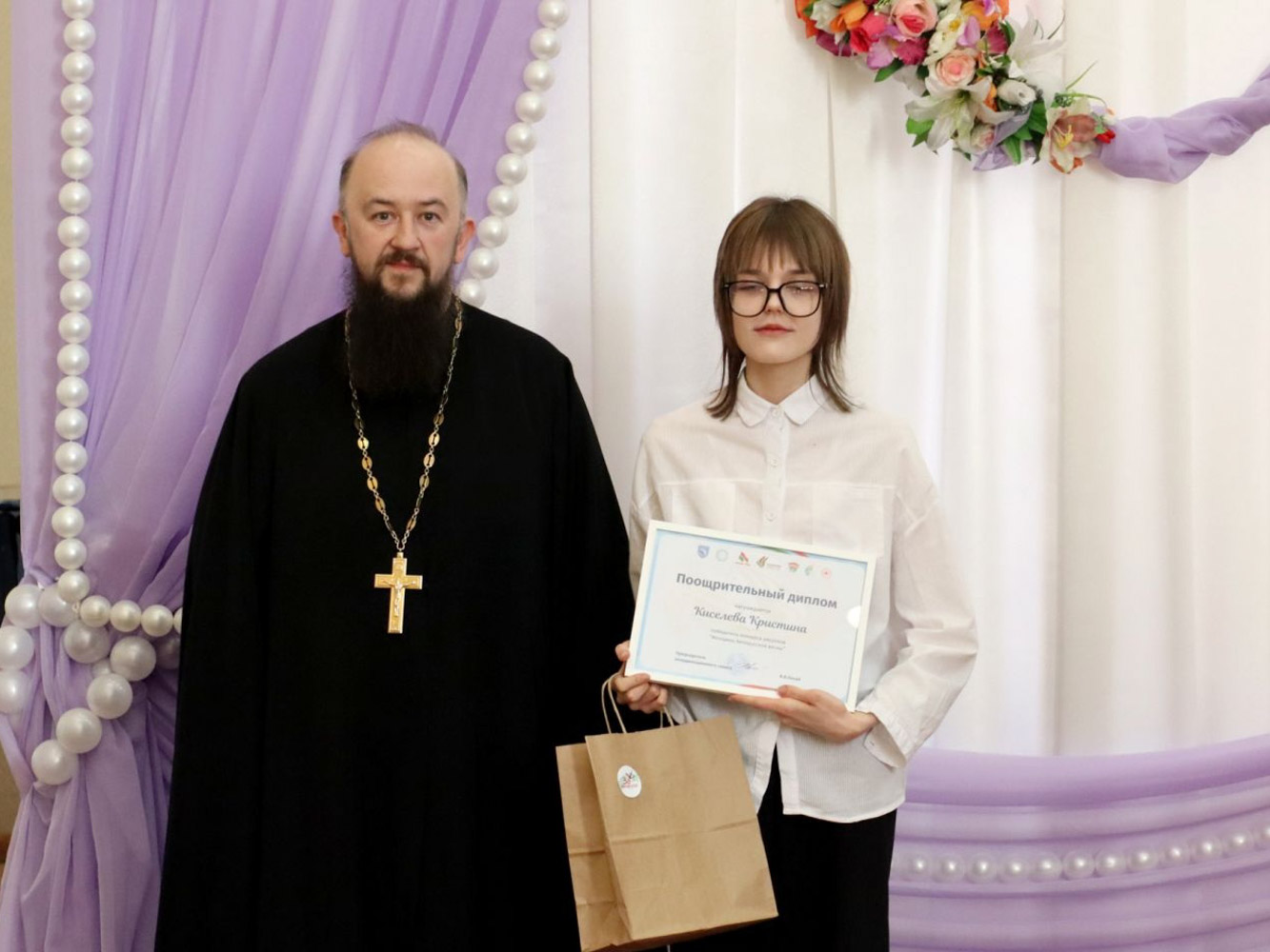 Обращаясь к собравшимся, иерей Павел Кулиш напомнил, что подлинное воспитание невозможно без прочного духовного основания. По словам священнослужителя, обращение молодёжи к образам святых и достойных женщин своей земли помогает вести серьёзный разговор о нравственном выборе, любви к Родине и уважении к её истории. Для православного сознания значимо и то, что многие конкурсные работы были посвящены преподобной Евфросинии Полоцкой, чей пример сохраняет духовную силу и в наши дни.