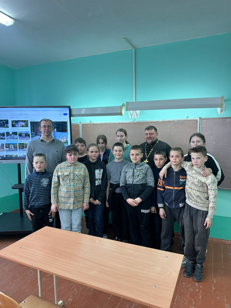 Вместе со священнослужителем и учителем истории Шепелевым Николаем Ивановичем учащиеся 6 и 7 классов дружно дополняли друг друга, называя все важное в жизни: мирное небо над головой и подвиг Защитников Отечества, подаривших нам спокойную жизнь; наши семьи, близких и дорогих нам людей и верных друзей, здоровье, красоту природы.