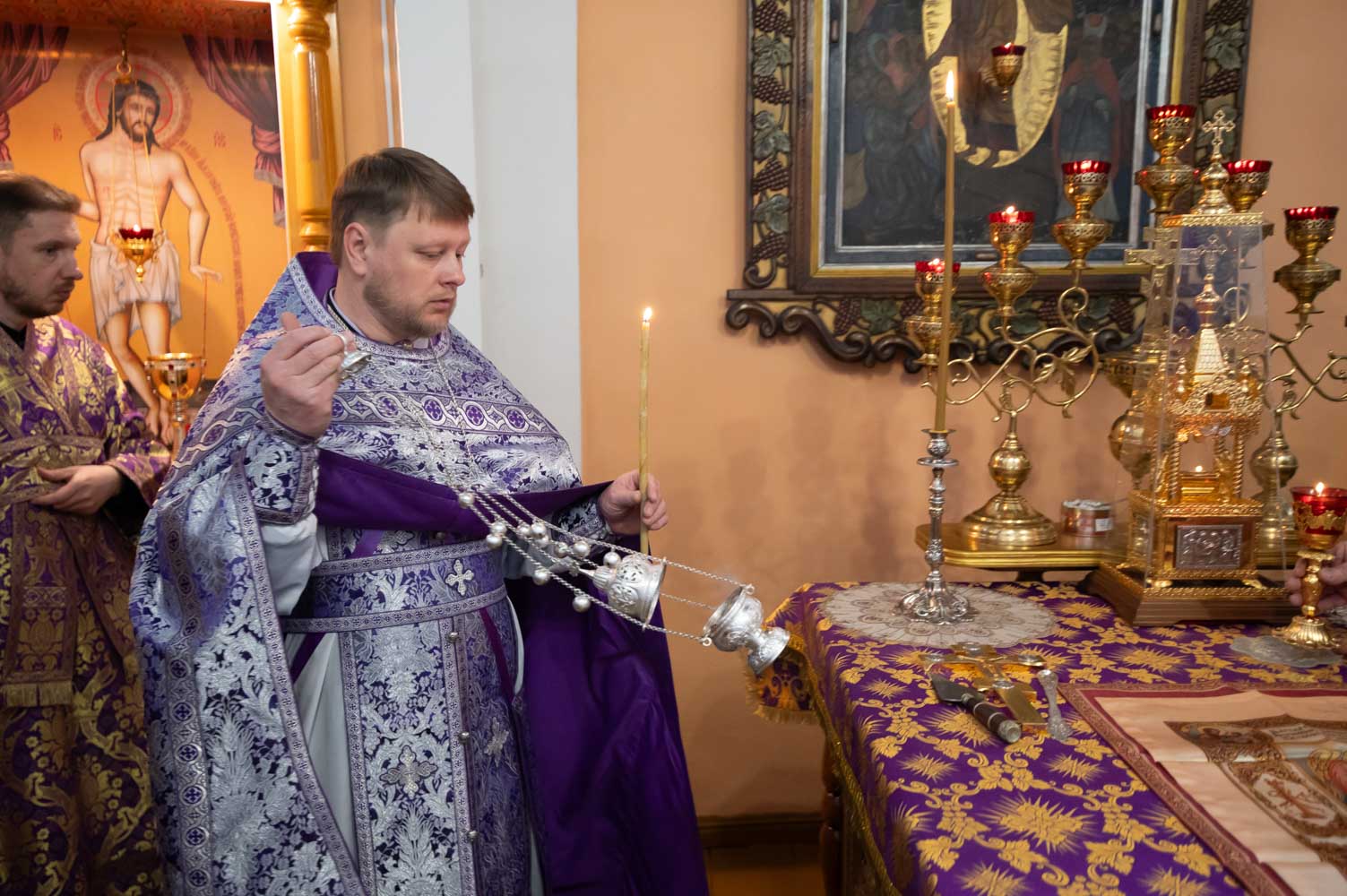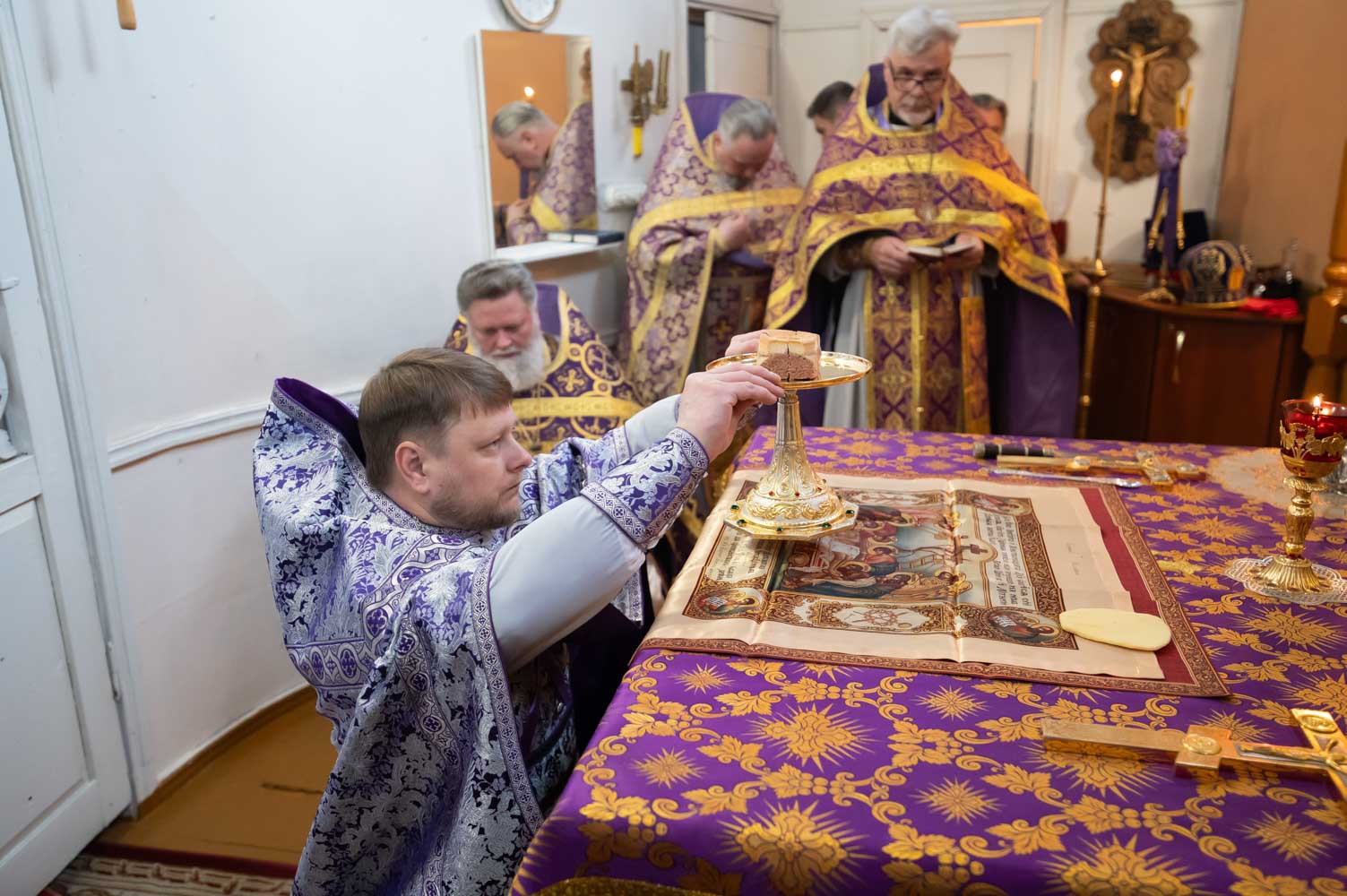 Литургию Преждеосвященных Даров 1 апреля 2026 года, в среду 6-й седмицы Великого поста, в день памяти прав. Софии, княгини Слуцкой, Высокопреосвященнейший Стефан, архиепископ Гомельский и Жлобинский, совершил в приходе храма Преображения Господня в г.Чечерске.