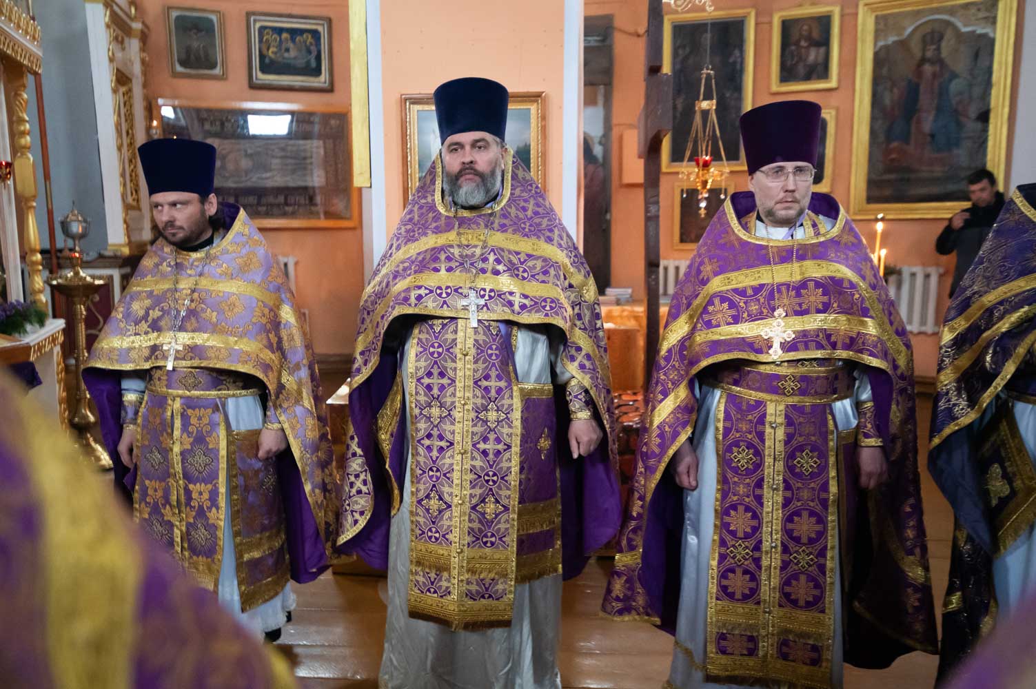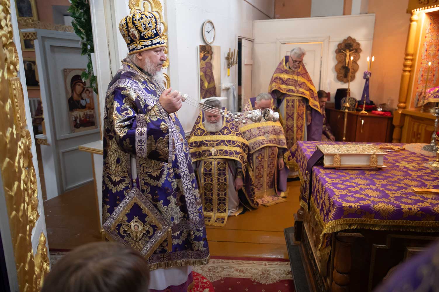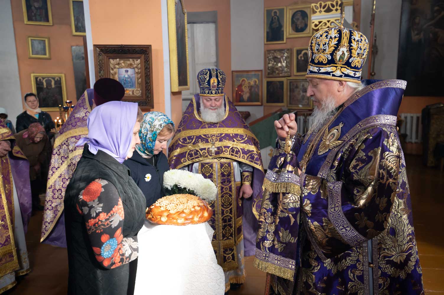 Высокопреосвященнейшему сослужили: секретарь Гомельской епархии протоиерей Георгий Алампиев, благочинный Чечерского округа, настоятель прихода протоиерей Геннадий Хаткевич и духовенство благочиния и епархии.
