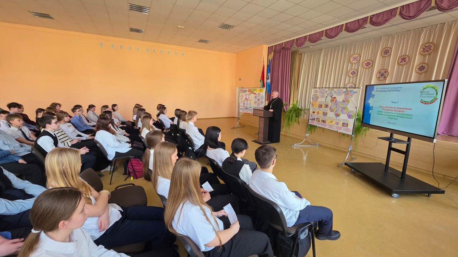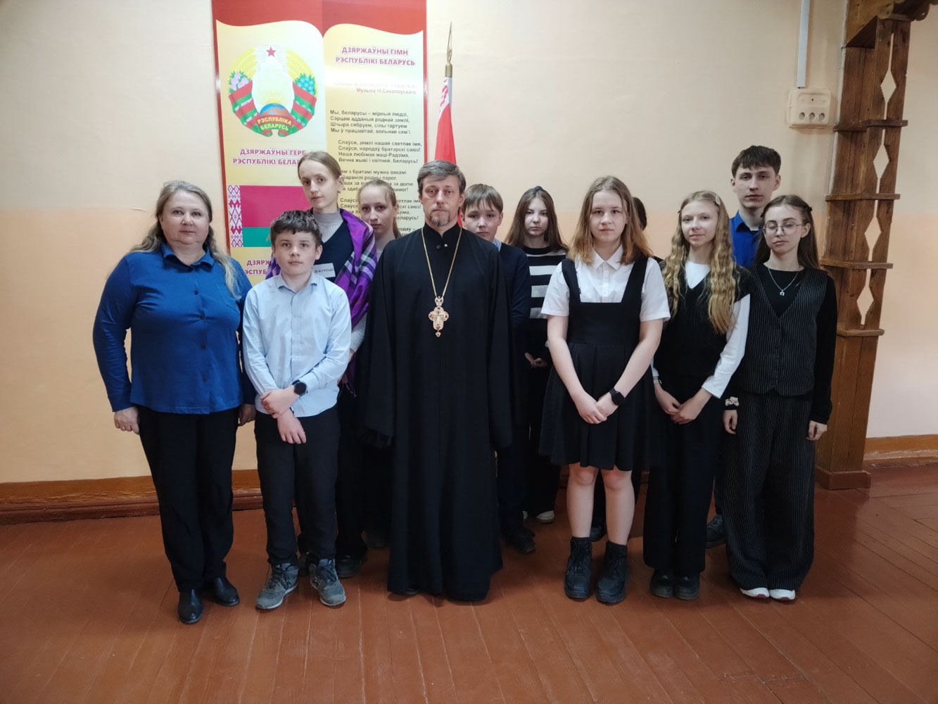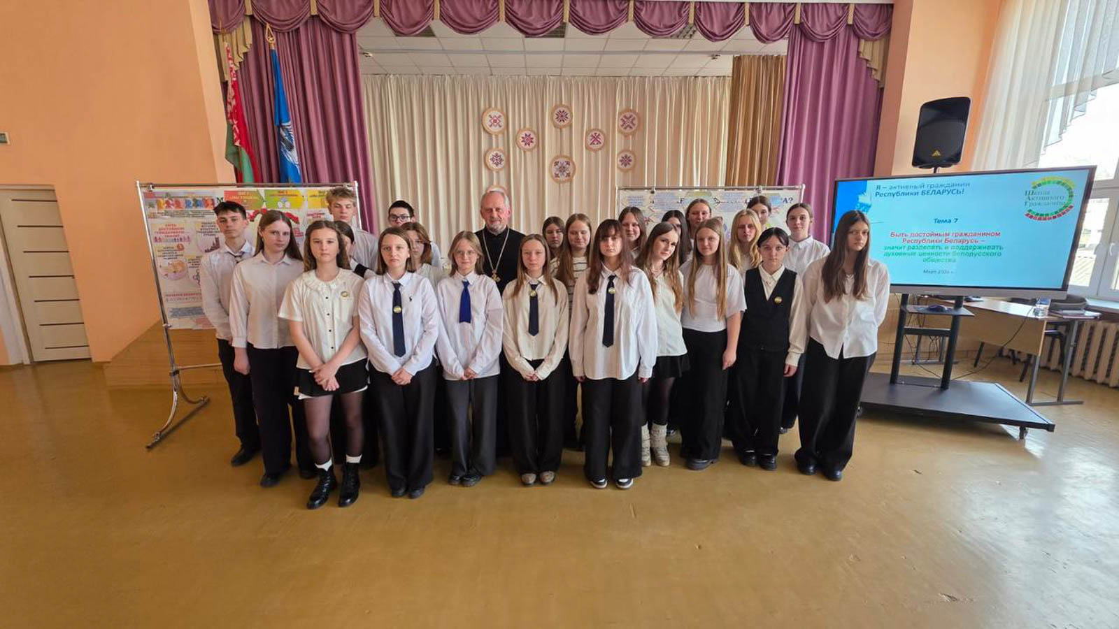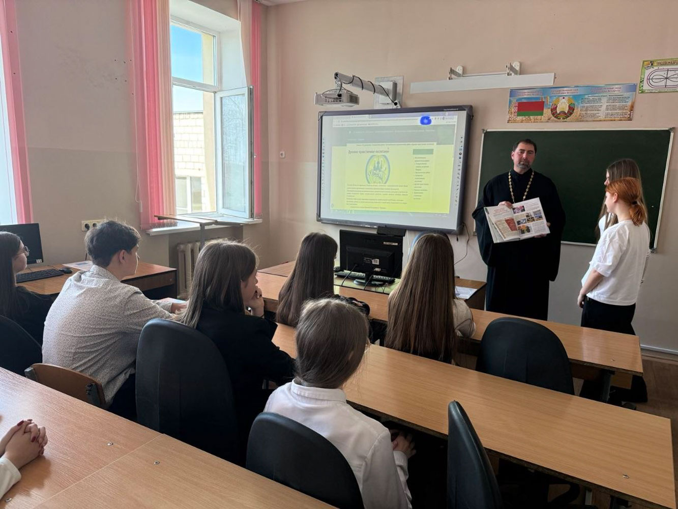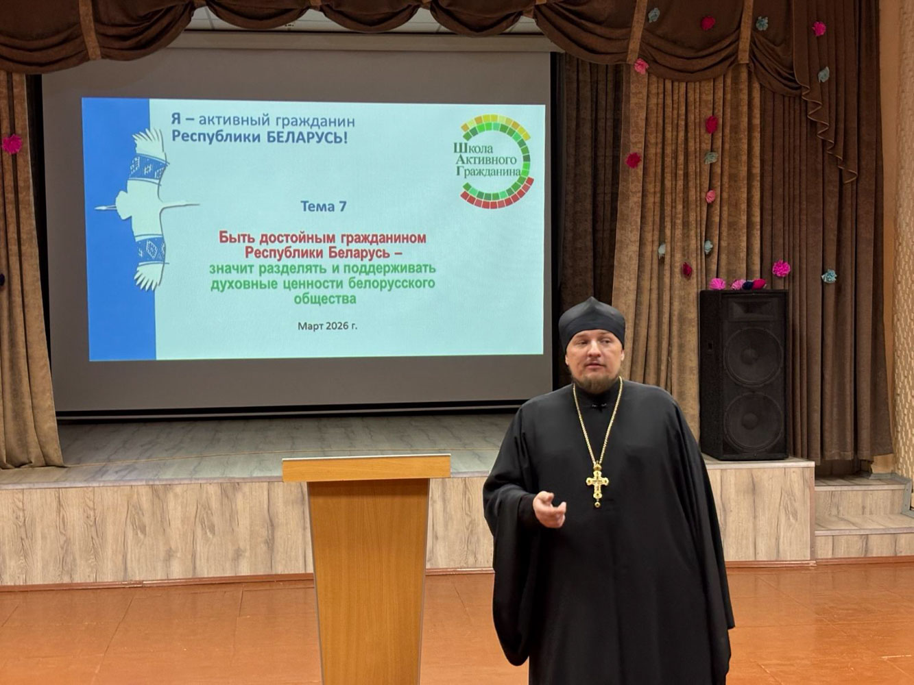 31 марта с учащимися 8-11 классов  Проскурнянской средней школы о том, что значит быть достойным гражданином Республики Беларусь беседовал настоятель прихода храма Покрова Пресвятой Богородицы г.п. Стрешин протоиерей Евгений Межуев. Разговор был посвящен духовным ценностям, которые помогают человеку сохранять внутреннюю опору, уважение к людям и любовь к своей стране. Священник рассказал школьникам о Герое Беларуси митрополите Филарете Вахромееве, который посвятил свою жизнь служению Богу и людям, а сорок лет — белорусской земле. Также ребята услышали о нашем соотечественнике, святом праведном Иоанне Кормянском. Жизнь этих людей стала примером верности, смирения, ответственности и любви к ближнему. Через такие судьбы особенно ясно видно, что настоящая гражданственность начинается с честности, совести и готовности жить не только для себя.