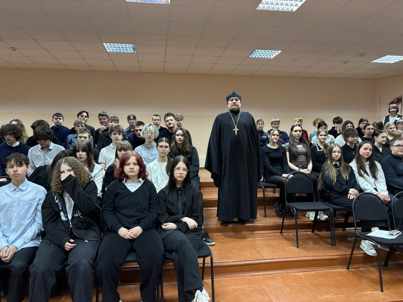 По просьбе педагогов поговорили о бережном отношении к жизни, недопустимости насилия и о том, почему так важно вовремя просить о помощи. Иерей Андрей Исаев напомнил детям о простой, но очень важной истине: жизнь — великий дар Божий. Каждый человек бесконечно ценен, потому что создан по образу Божию. Поэтому нельзя относиться к себе или к другому с жестокостью, презрением или равнодушием. Мы призваны хранить в себе этот образ, беречь душу, совесть и сердце. Когда человеку тяжело, когда он сталкивается с болью, страхом или одиночеством, особенно важно не замыкаться в себе, не оставаться один на один со своей бедой, а искать поддержку у близких, педагогов, священника и тех, кто готов помочь.