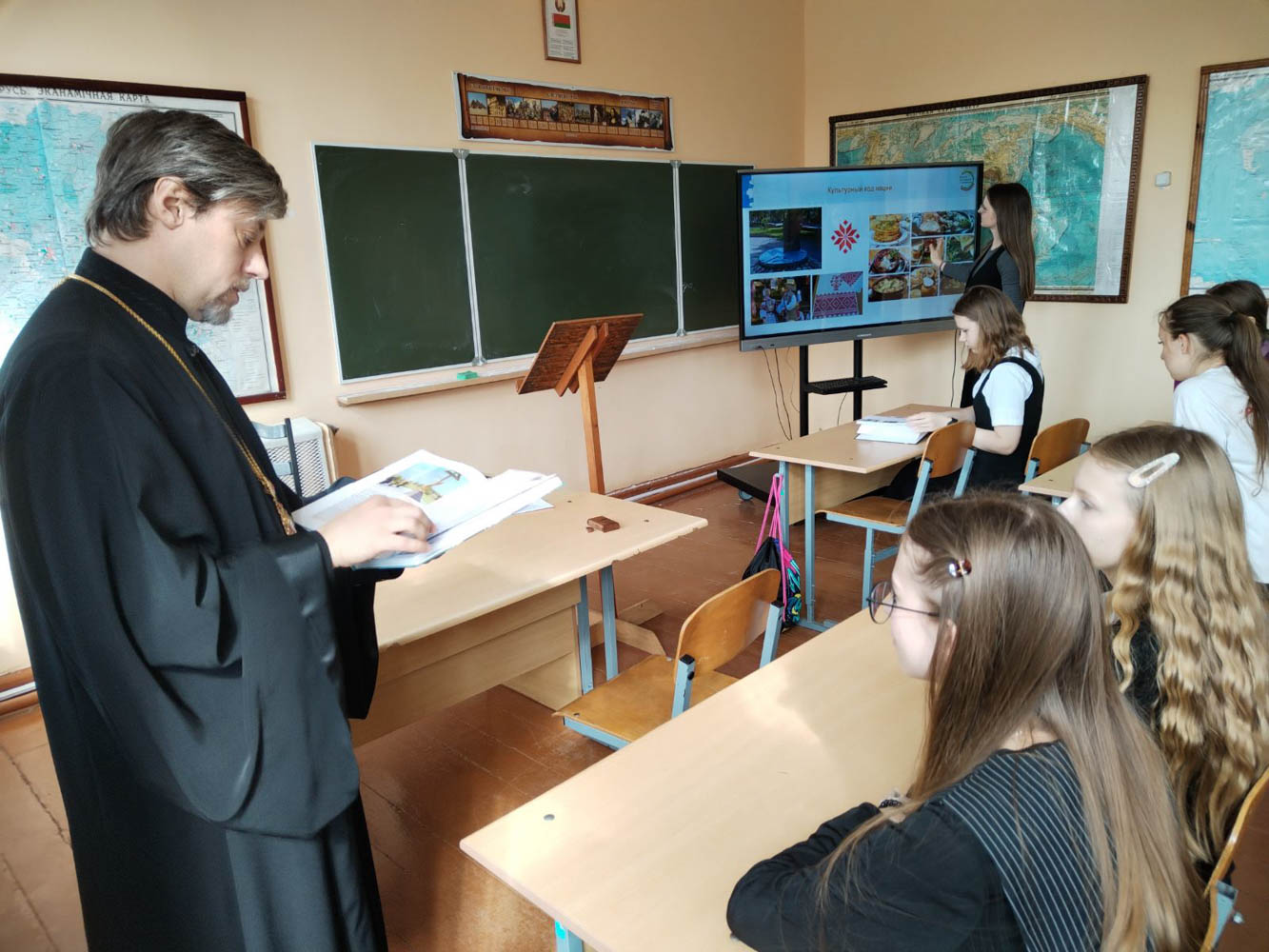 31 марта иерей Михаил Маркосян посетил Малевичскую среднюю школу и среднюю школу № 2 города Жлобина. В ходе беседы отметили, что основа любого здорового общества — семья. Именно в семье человек учится любви, уважению, ответственности и заботе о ближнем. Священник напомнил, как важно беречь добрые отношения между родителями и детьми, с благодарностью относиться к старшим, проявлять милосердие, терпение и послушание. Отдельное внимание было уделено скромности и сдержанности как качествам, которые помогают человеку сохранять внутреннее достоинство и мир с окружающими.