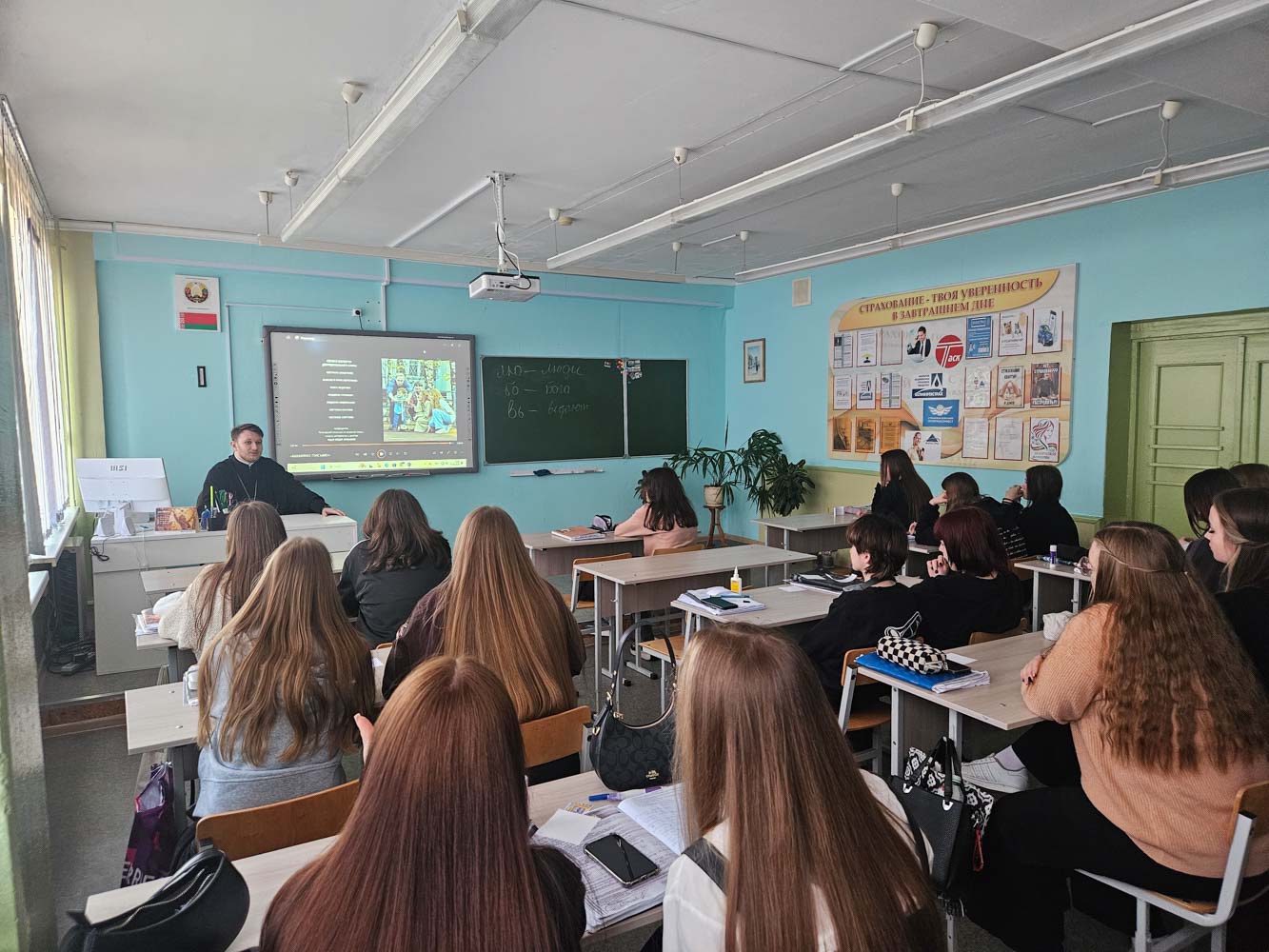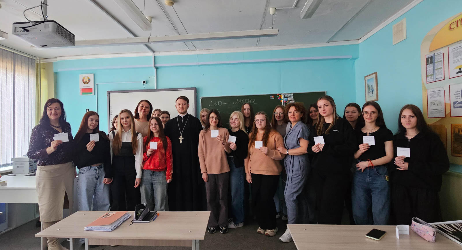 Перед началом показа заместитель директора по учебной работе Татьяна Анатольевна Петрунько представила учащимся гостей встречи: представителя Благотворительного фонда поддержки семьи, материнства и детства «Покров» Екатерину Александровну Козловскую, клирика Петро-Павловского кафедрального собора г. Гомеля иерея Андрея Киселя, а также координатора отдела по вопросам семьи, защиты материнства и детства Гомельской епархии Ольгу Анатольевну Кривицкую. В ходе встречи все трое отвечали на вопросы, делились своим взглядом на затронутую тему.