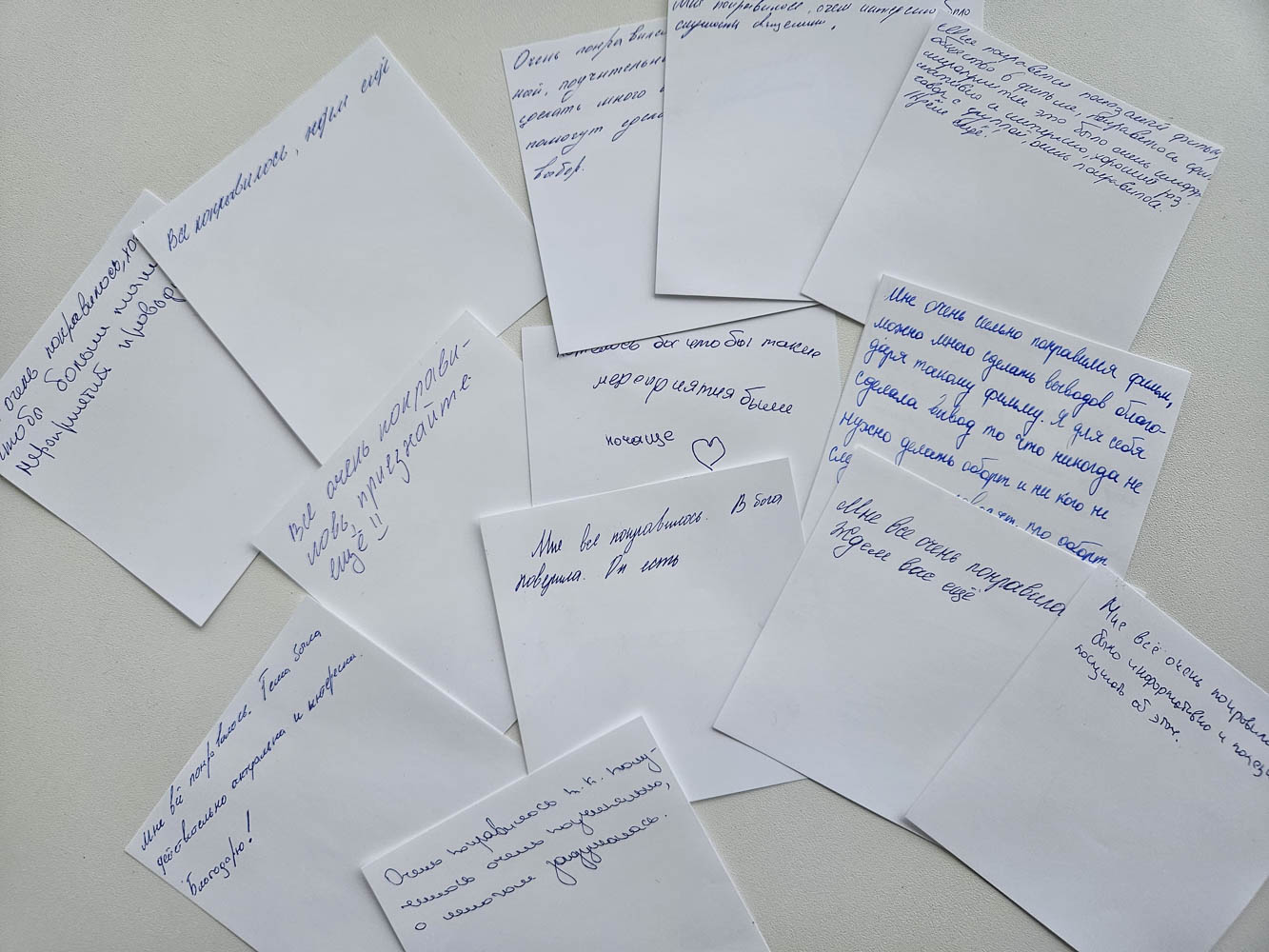 Встреча прошла в тёплой и доверительной атмосфере. Своими впечатлениями девушки поделились письменно – гости получили листочки с отзывами, ставшие живым свидетельством того, что разговор получился настоящим и важным.