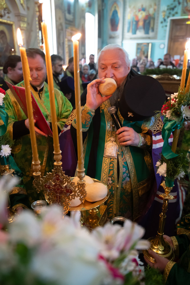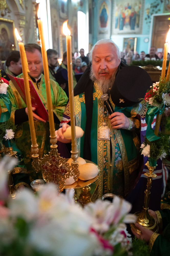 Высокопреосвященнейшему сослужили секретарь Гомельской епархии протоиерей Георгий Алампиев и духовенство собора.