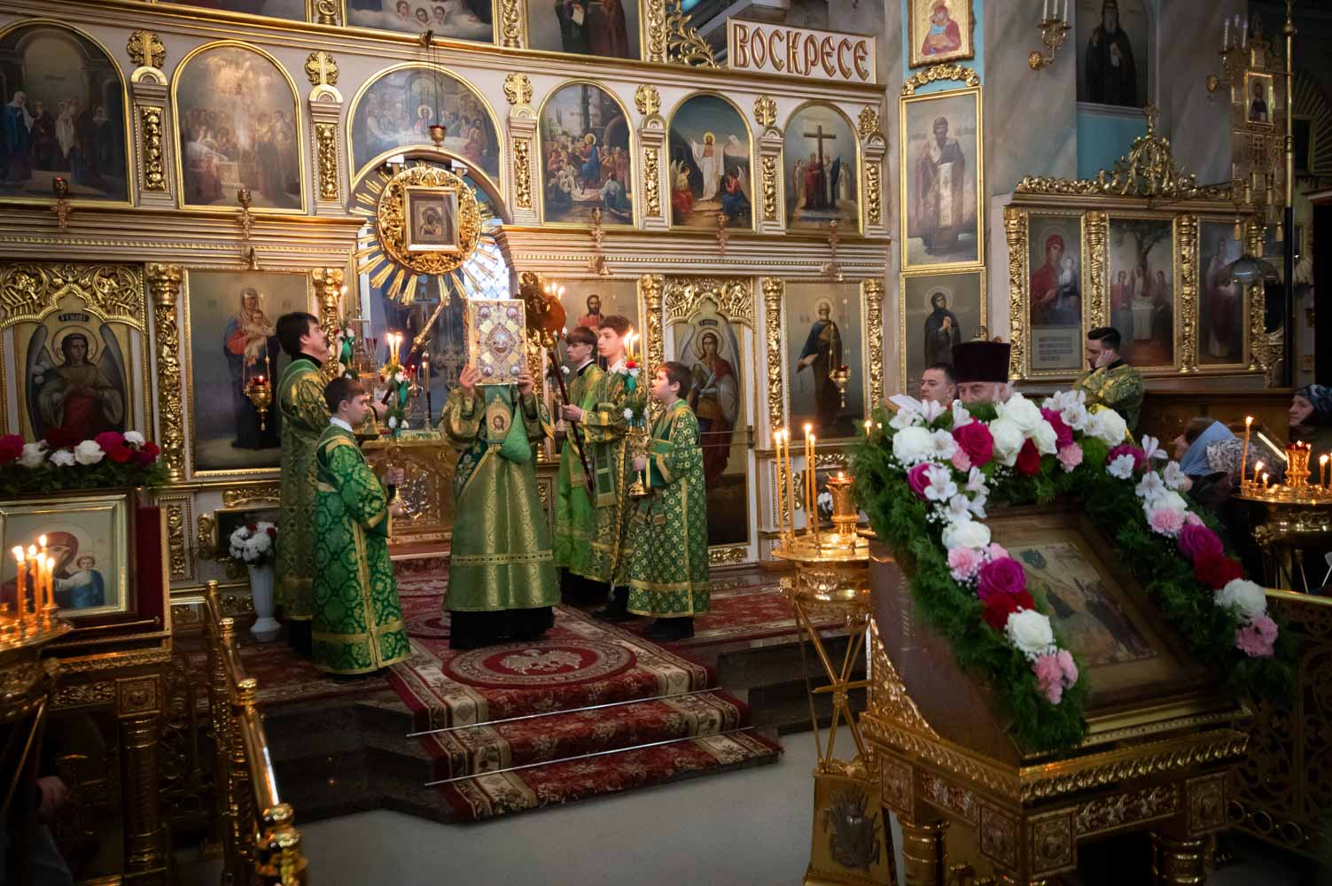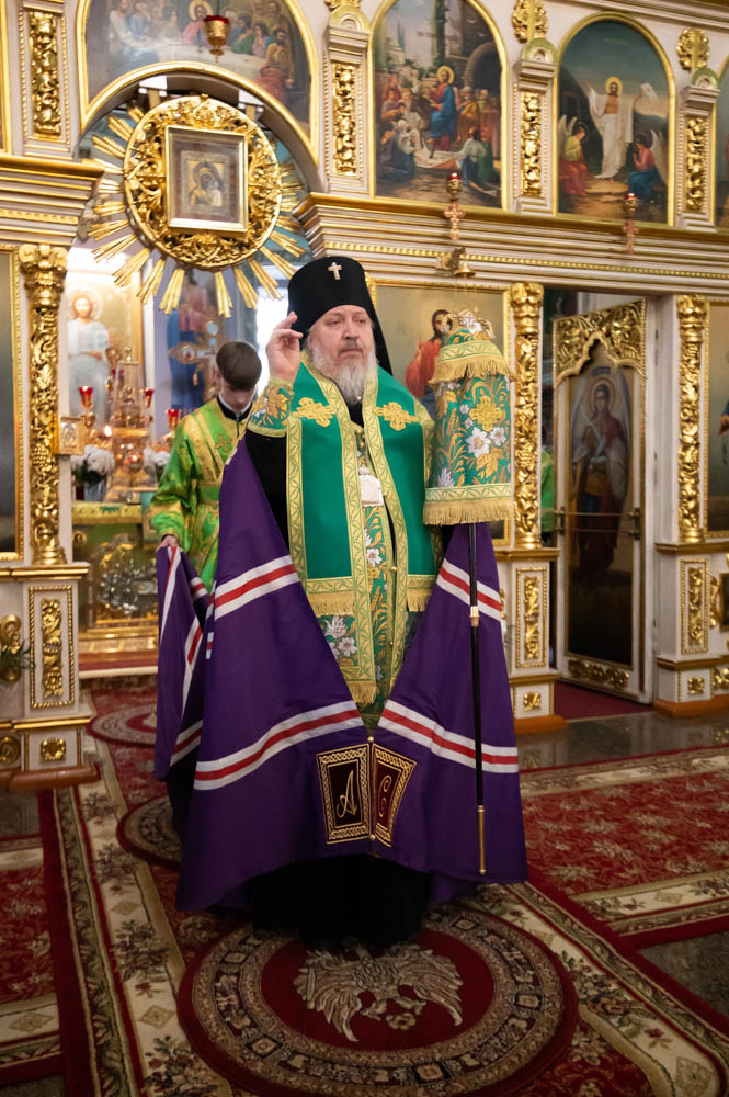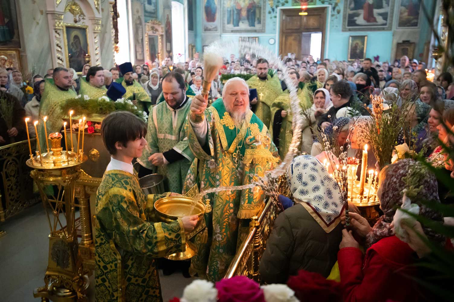 За богослужением владыка Стефан совершил освящение ваий и обратился к молящимся со словами архипастырского назидания.