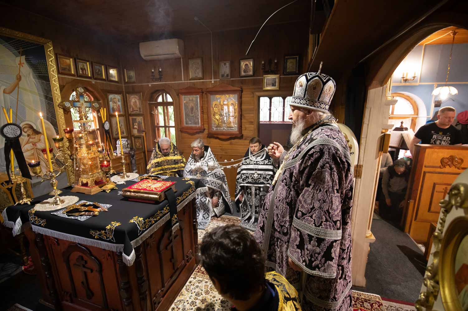 За богослужением были вознесены сугубые молитвенные прошения о восстановлении мира.