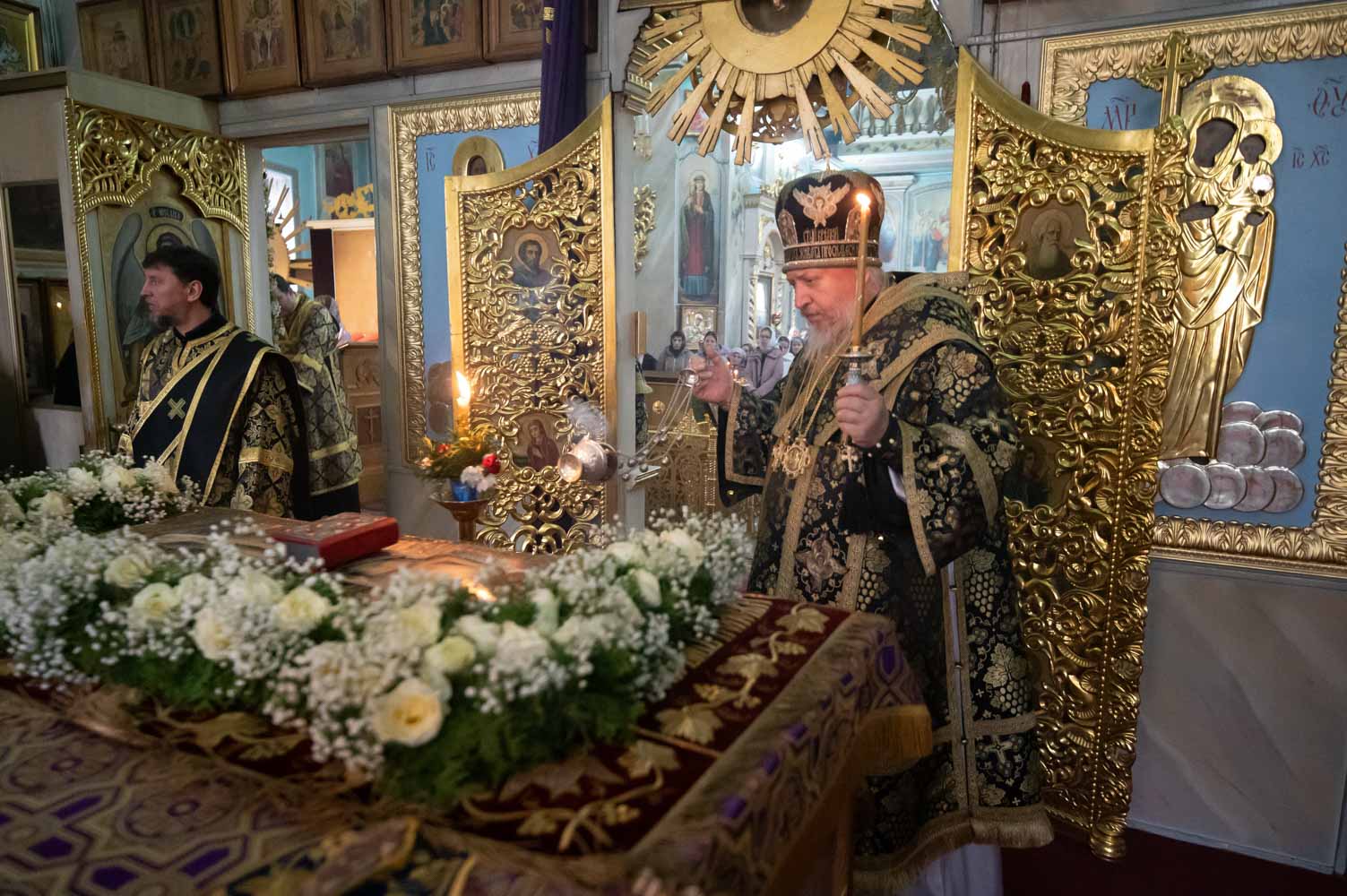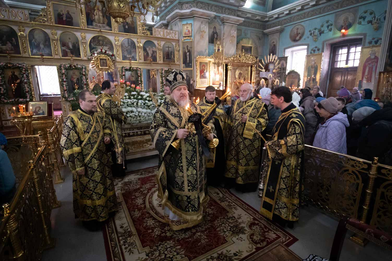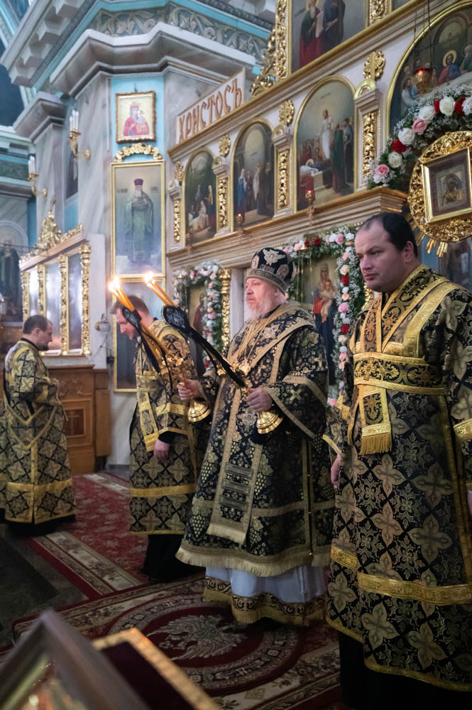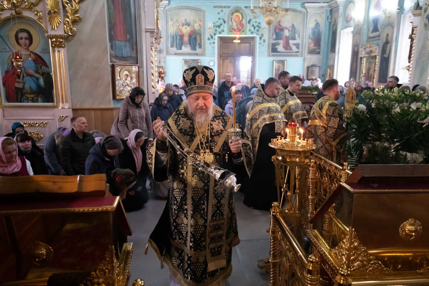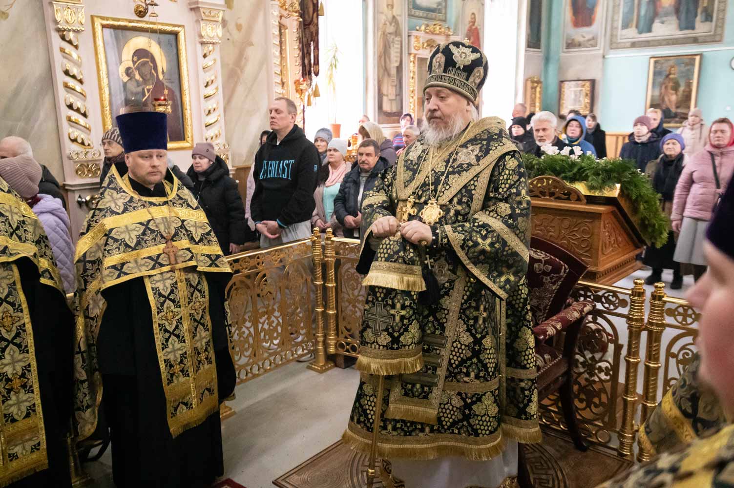 Его Высокопреосвященству сослужили секретарь Гомельской епархии протоиерей Георгий Алампиев и духовенство собора.