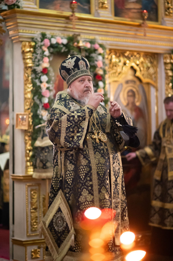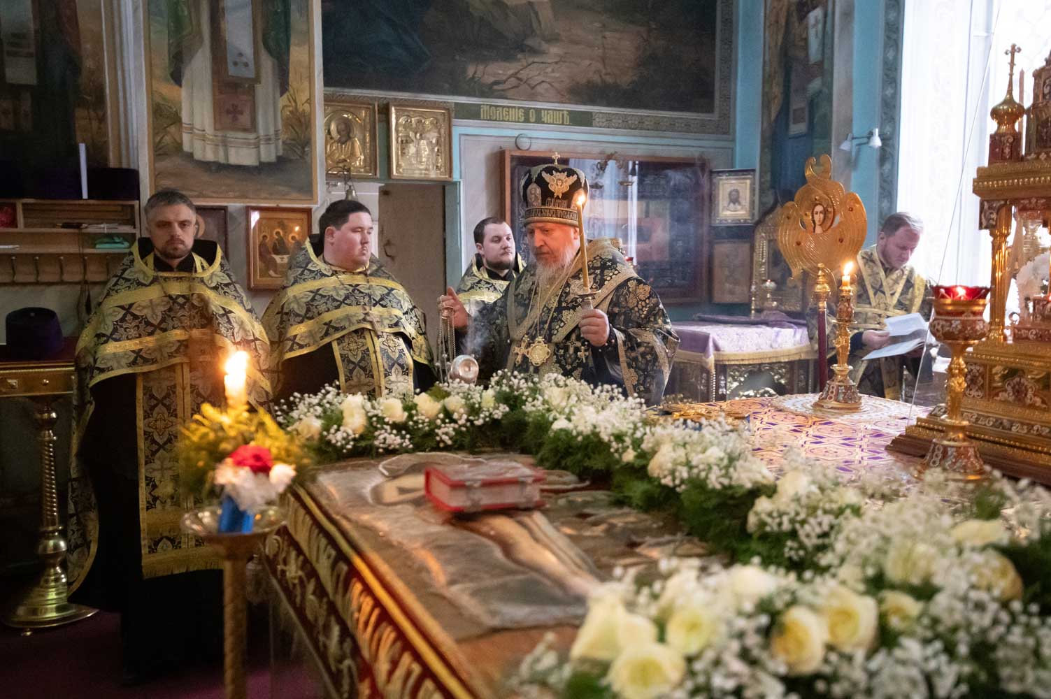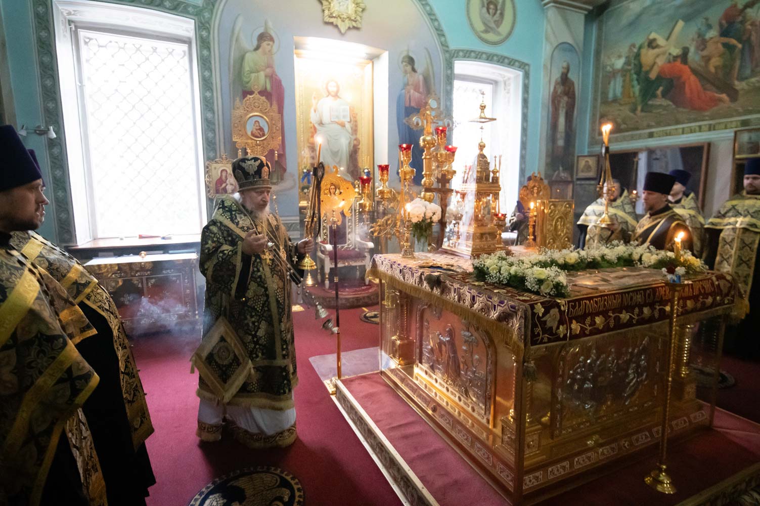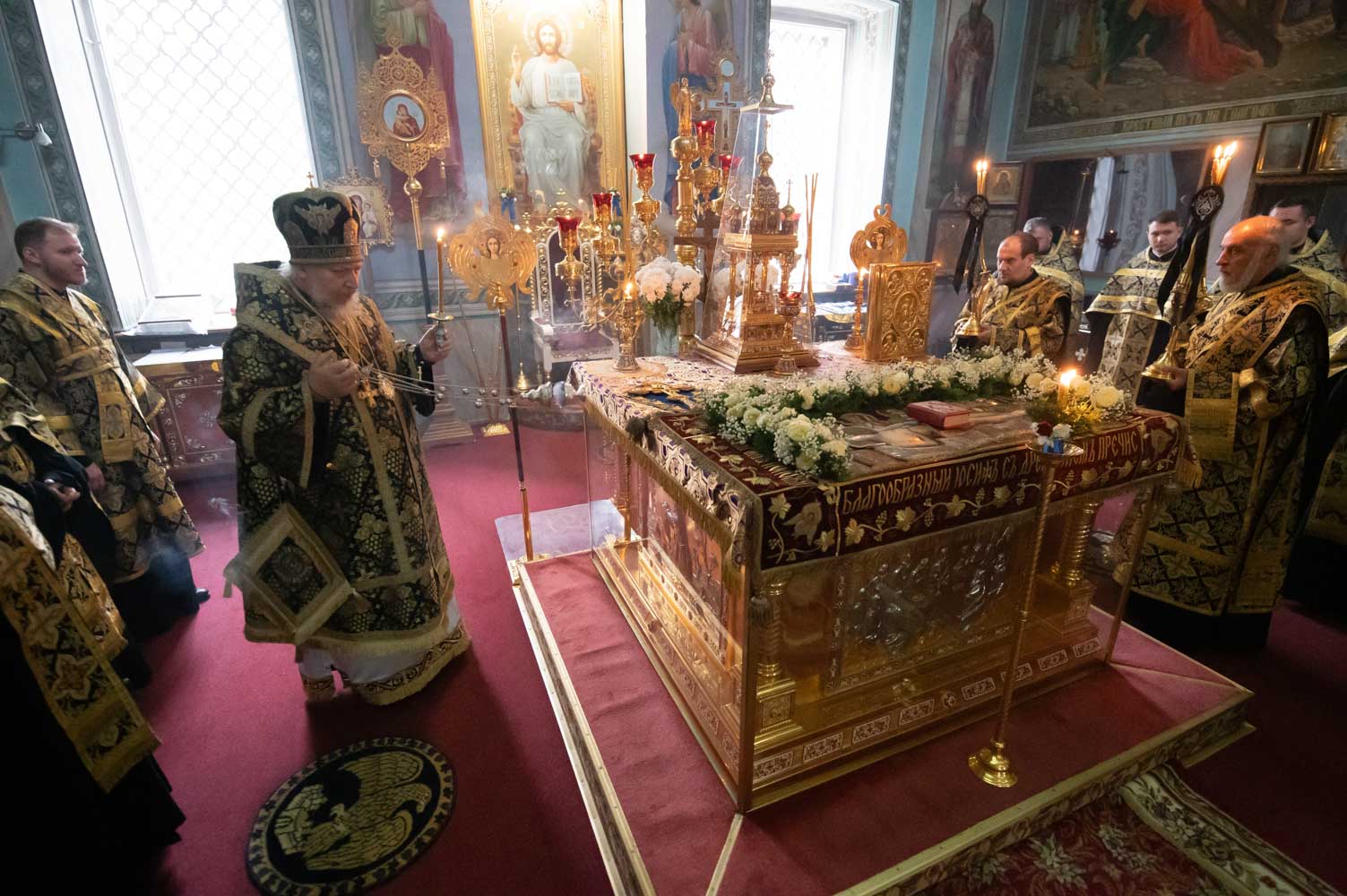 Его Высокопреосвященству сослужили секретарь Гомельской епархии протоиерей Георгий Алампиев и духовенство собора.