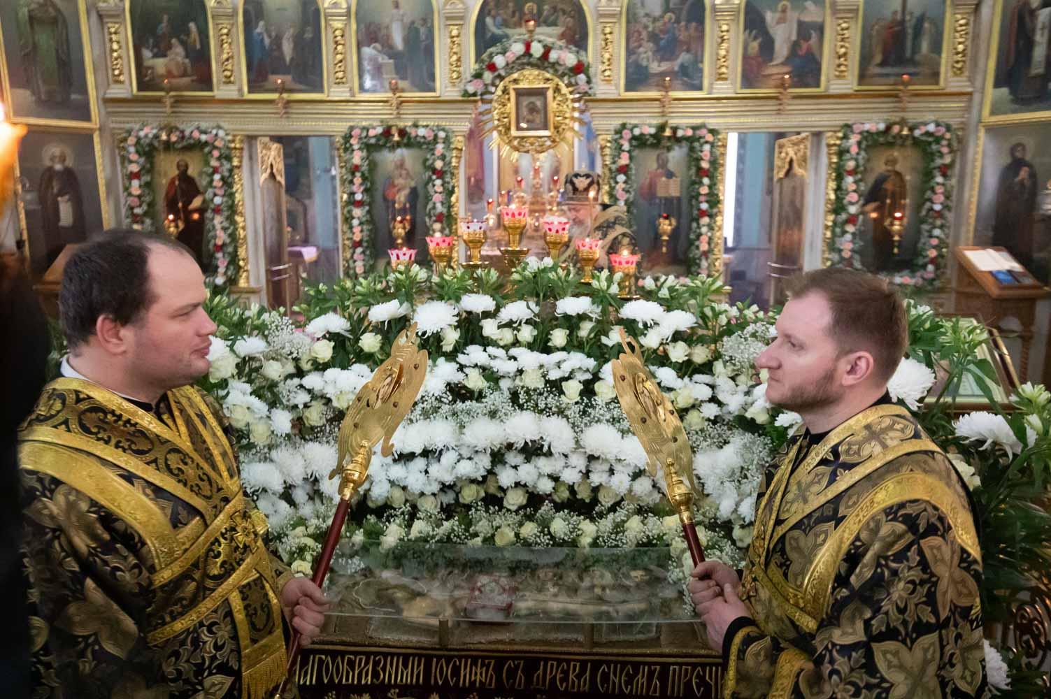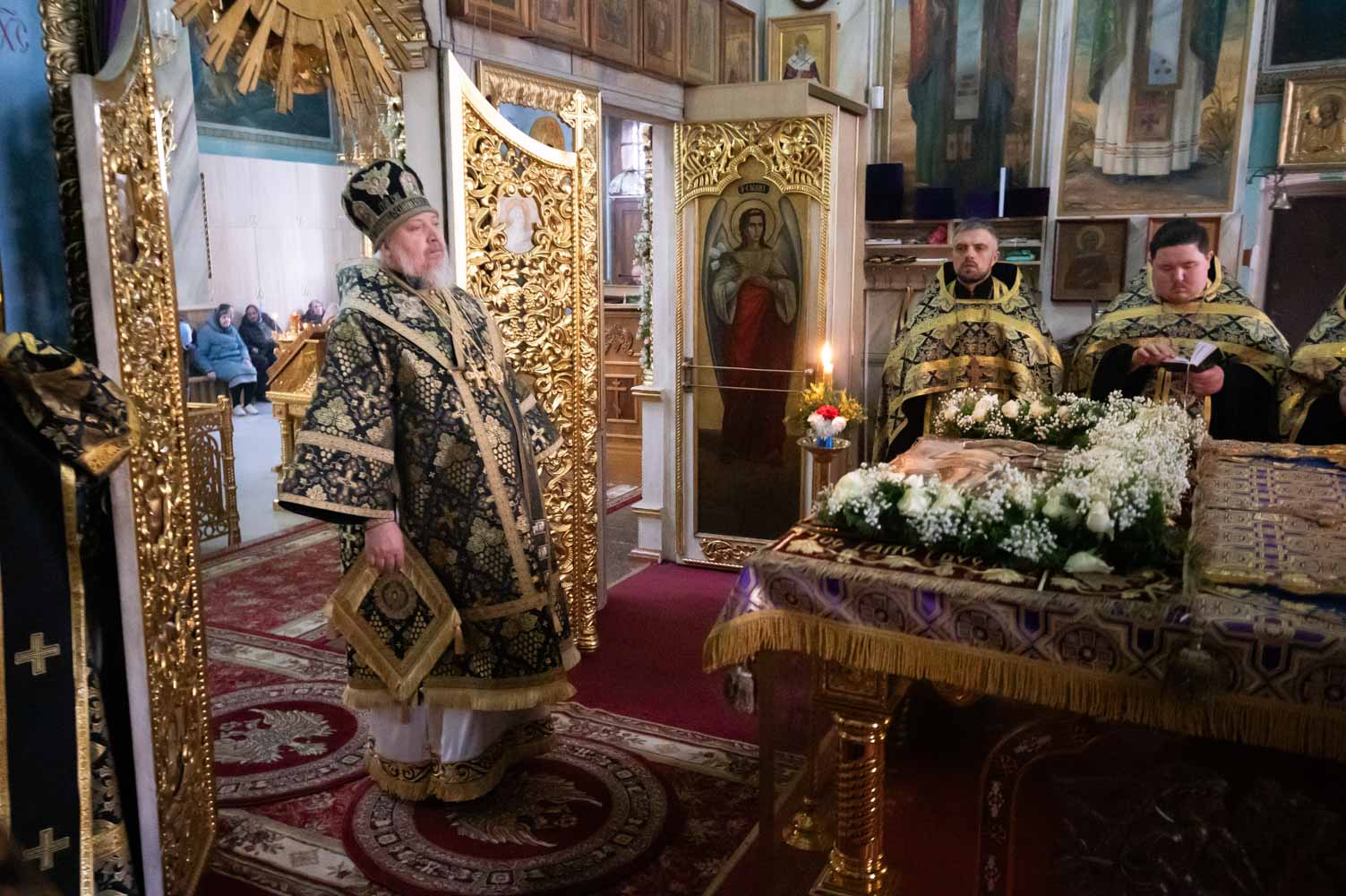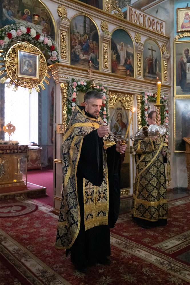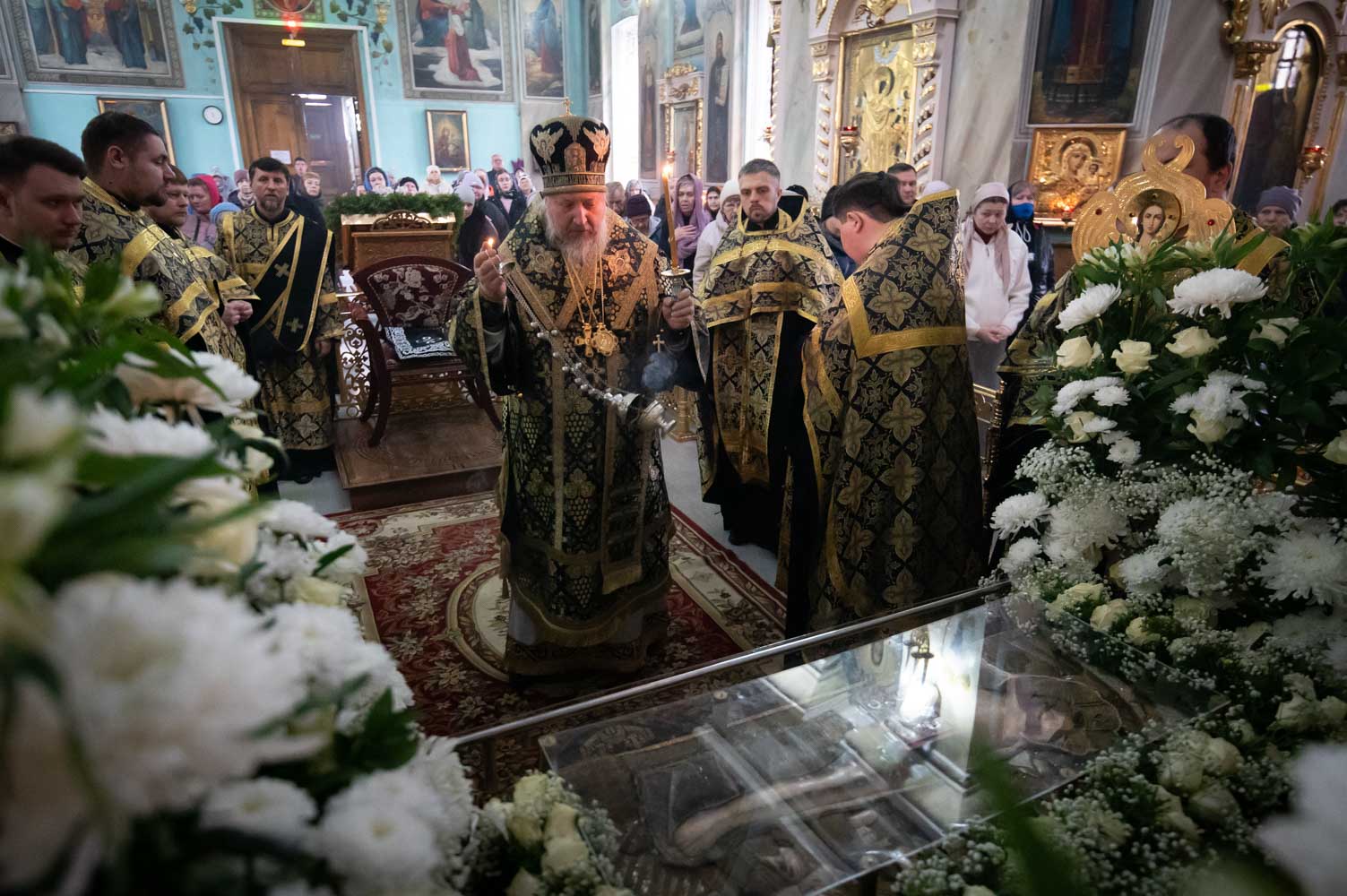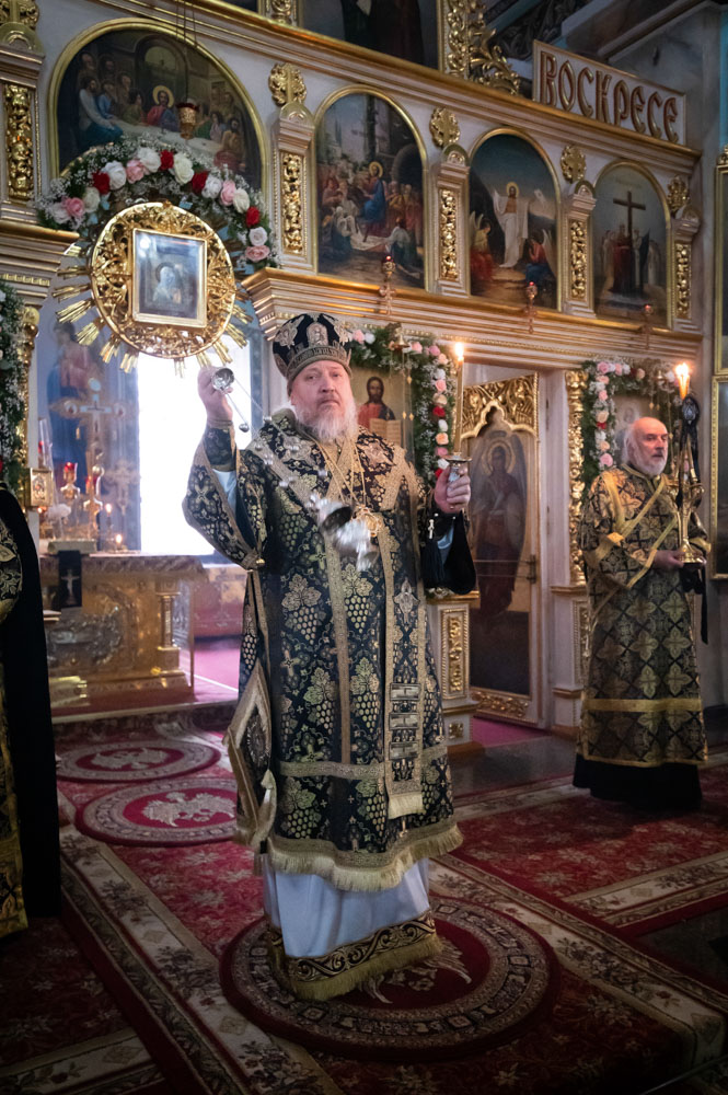 Его Высокопреосвященству сослужили секретарь Гомельской епархии протоиерей Георгий Алампиев и духовенство собора.