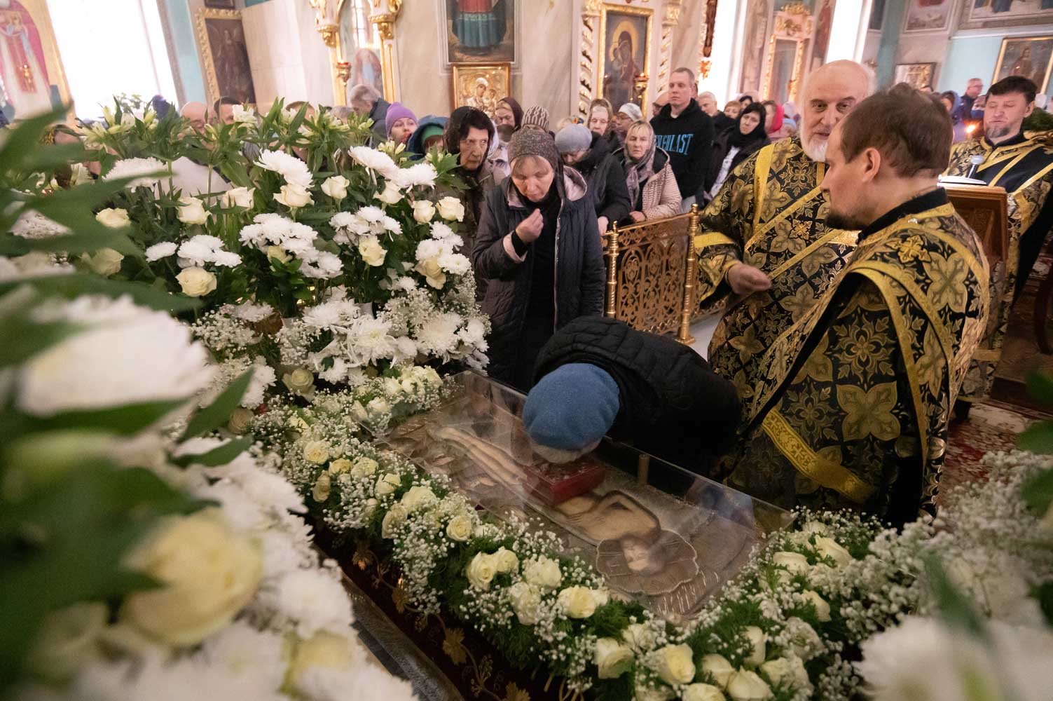 Затем священнослужители и верующие поклонились святой Плащанице.