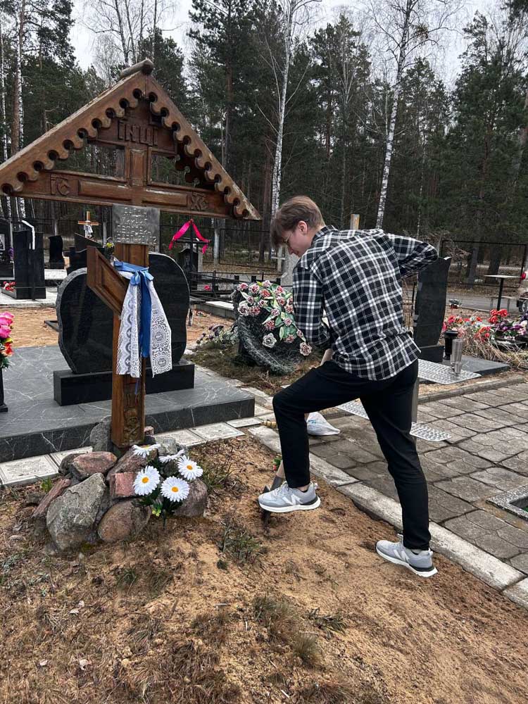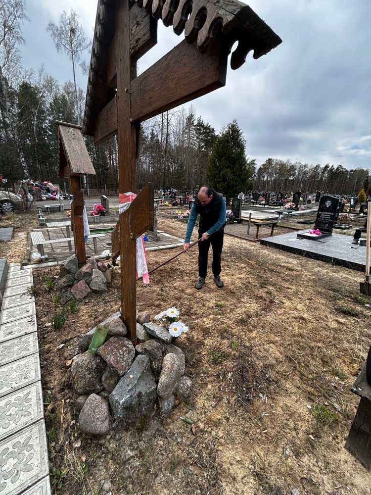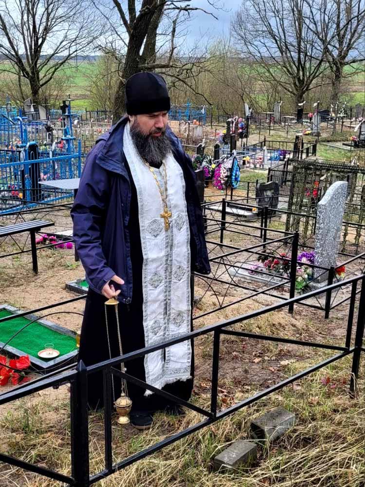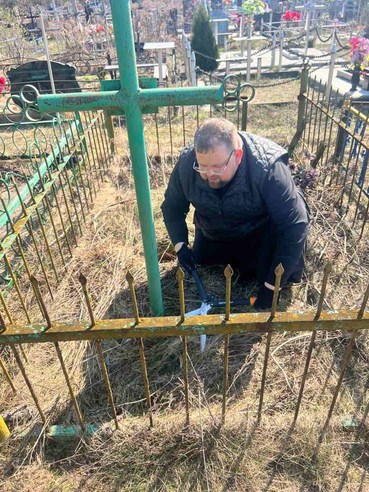 Иерей Евгений Новик в канун Великого Четверга убрал от опавшей листвы и веток места захоронения прихожан храмов святого равноапостольного Николая, архиепископа Японского в аг. Дуброва, и преподобного Амфилохия Почаевского в аг. Вежны.