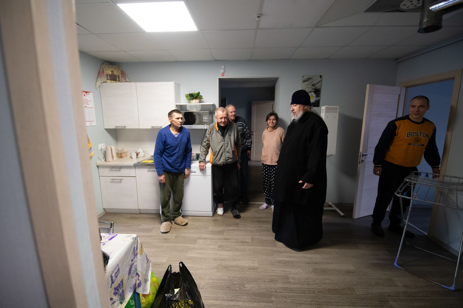 Затем архиепископ Стефан посетил Кризисный центр Красного Креста в Гомеле. Архипастырь уже многие годы оказывает этому учреждению духовную и материальную поддержку. В центре проживают люди без определённого места жительства, а также те, кто освободился из мест лишения свободы. Здесь им помогают наладить быт, восстановить документы, получить медицинскую помощь, найти работу и вернуться к нормальной жизни.