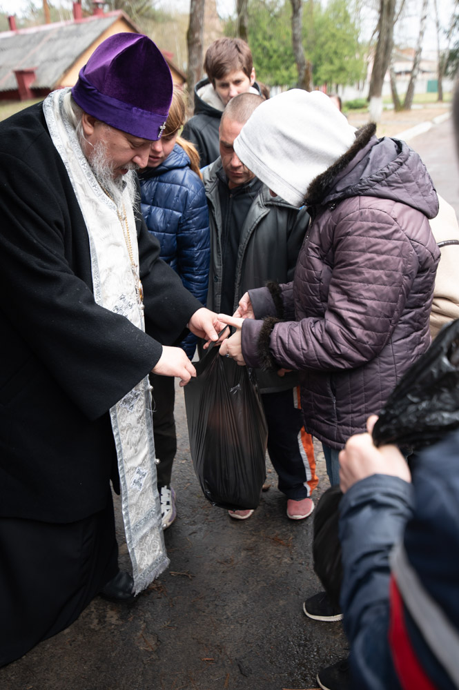 Обращаясь к проживающим, владыка Стефан рассказал о событиях Страстной седмицы и о значении праздника Пасхи Христовой. Архипастырь напомнил, что Воскресение Христово открывает человеку надежду, которая не отнимается ни болезнью, ни старостью, ни жизненными испытаниями. В знак любви и молитвенной поддержки владыка передал пасхальные дары — куличи, освящённые яйца, мёд и фрукты.