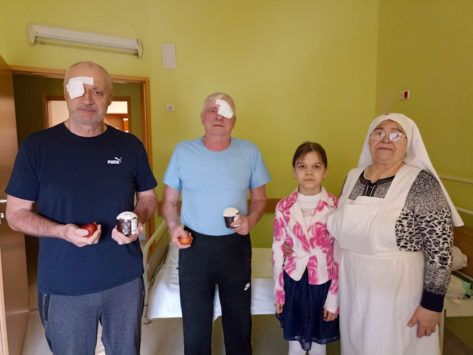Освящённые куличи и яйца получили около трёхсот пациентов отделений взрослой и детской гематологии, хирургии, офтальмологии, эндокринологии, иммунопатологии, гинекологии и терапии ЧАЭС.