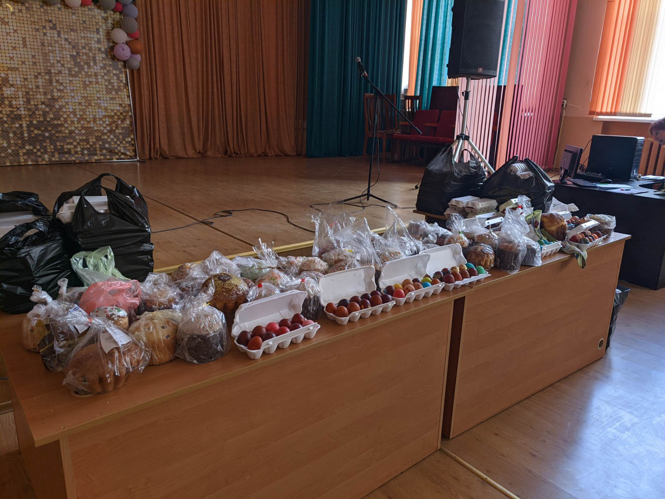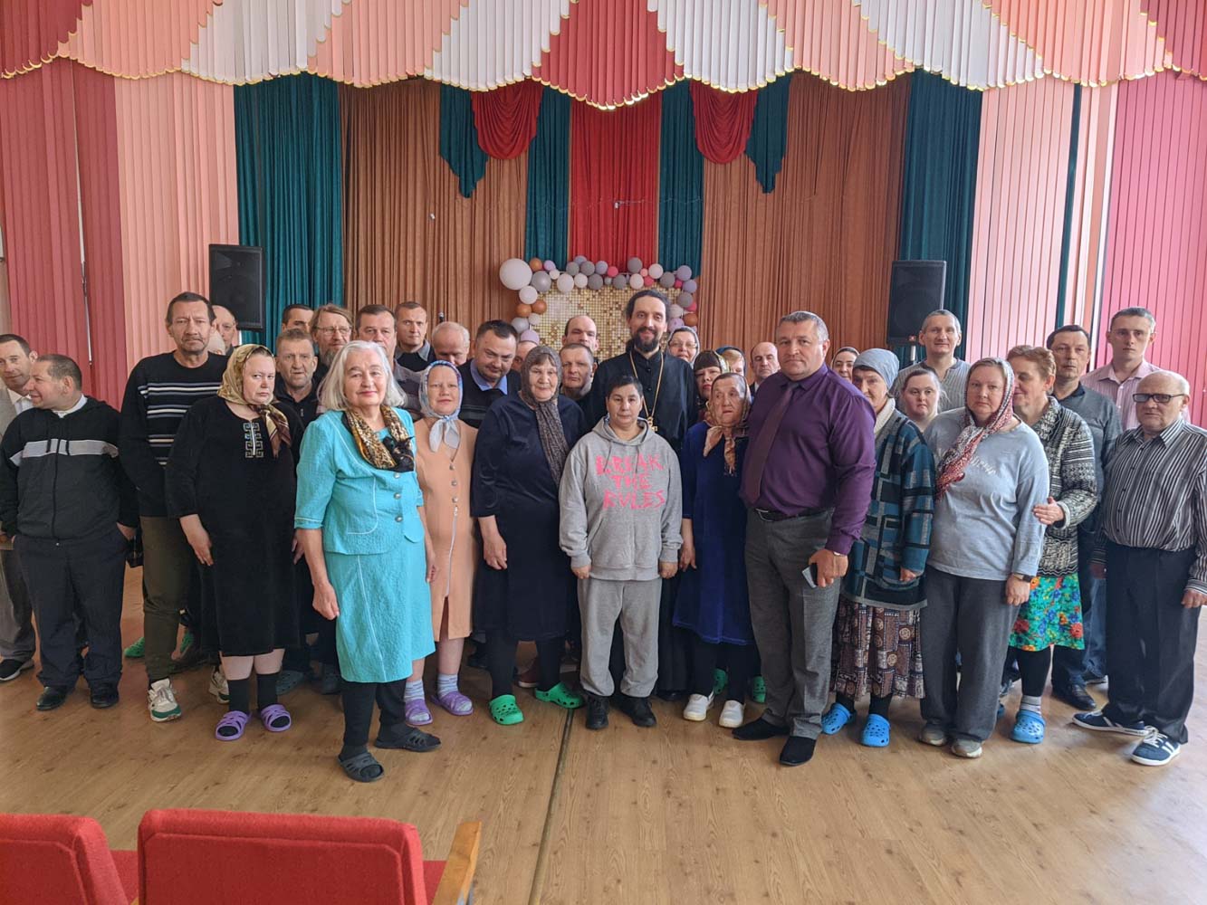 В пансионате проживают 318 человек с психоневрологическими расстройствами, которым необходим постоянный уход. Во время визита игумен Феодорит передал насельникам пасхальные угощения — куличи и яйца.